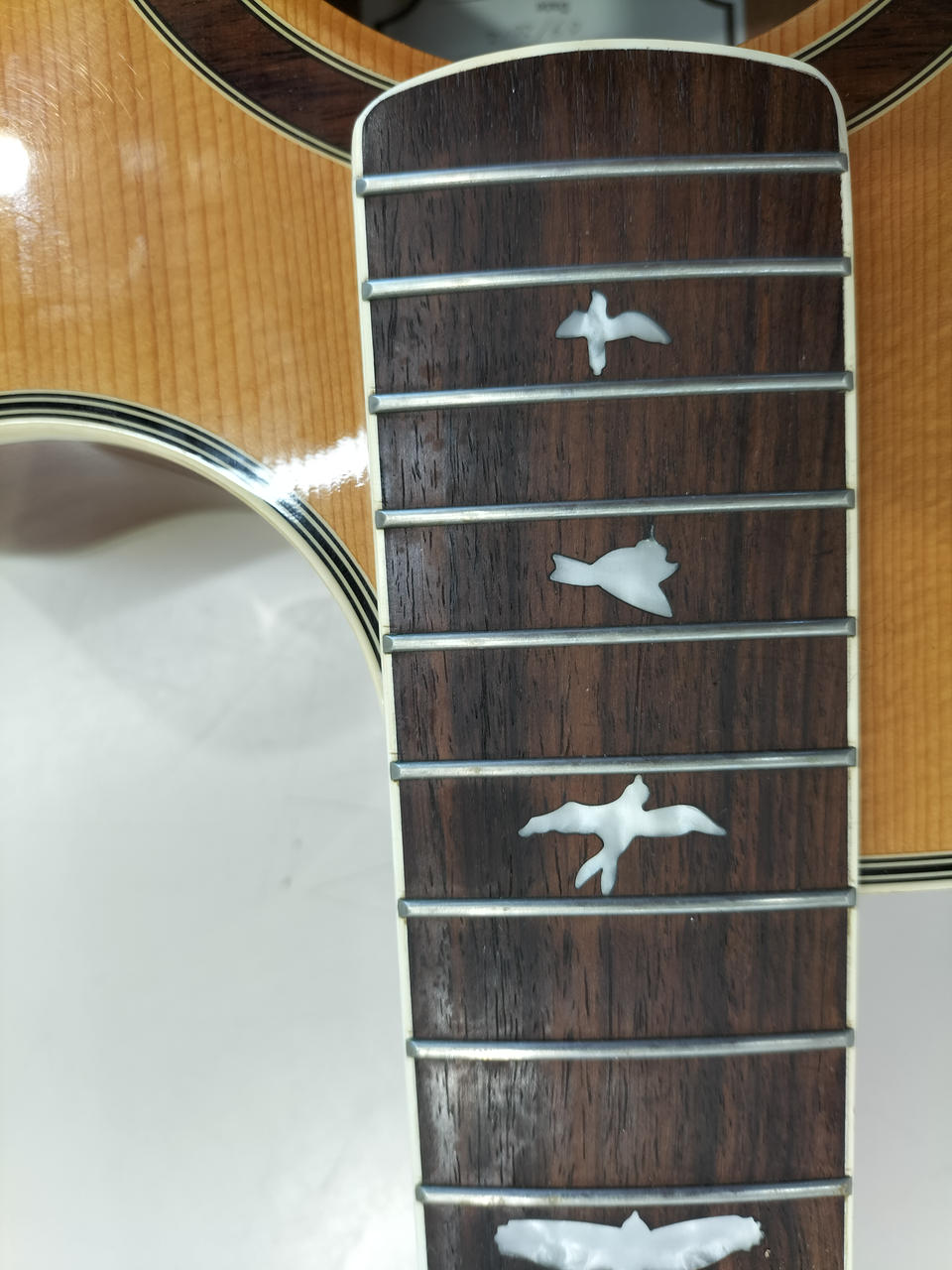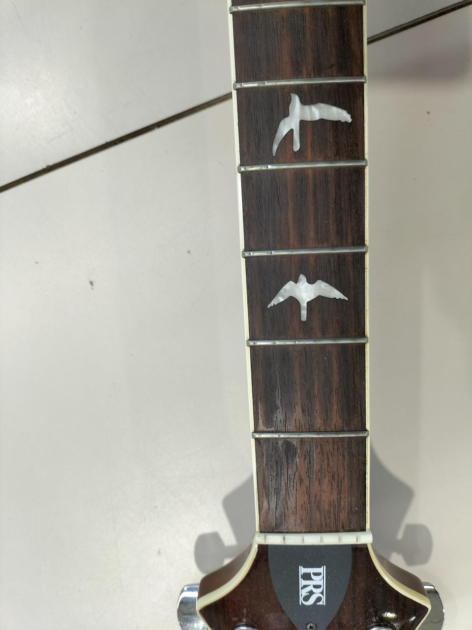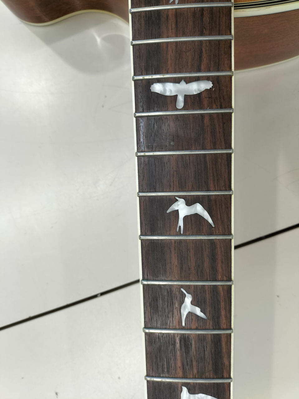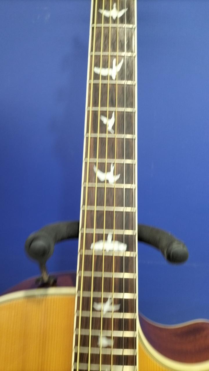 ピックアップにPRSオリジナルを採用し、トップにシトカ・スプPRSらしいバード・インレイ |