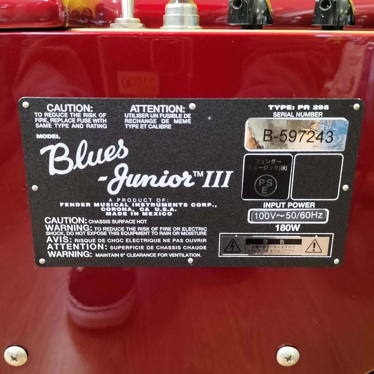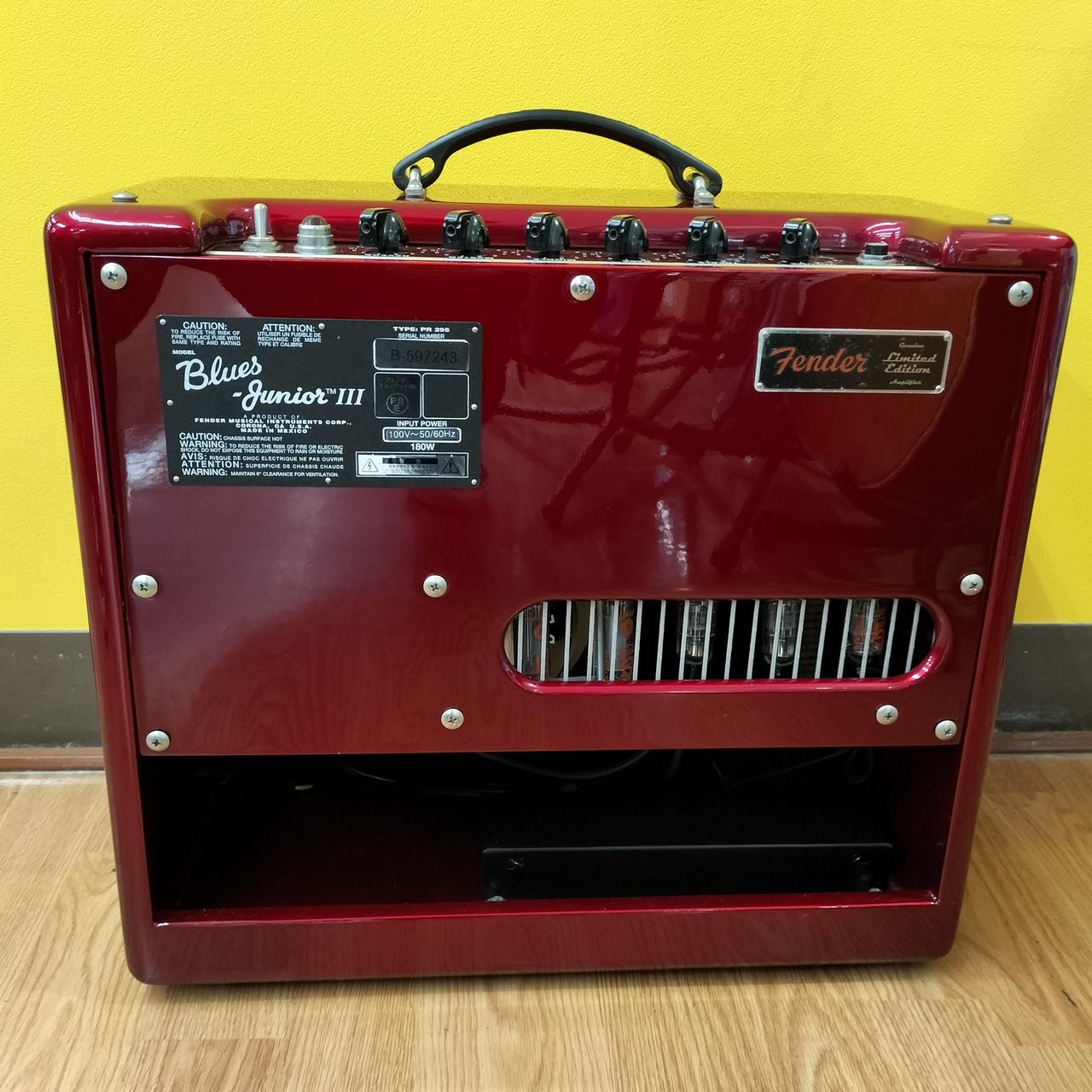 FENDERのギターアンプ「BLUES-JUNIOR Ⅲ」のCANDY APPLE REDカラーです。 |
