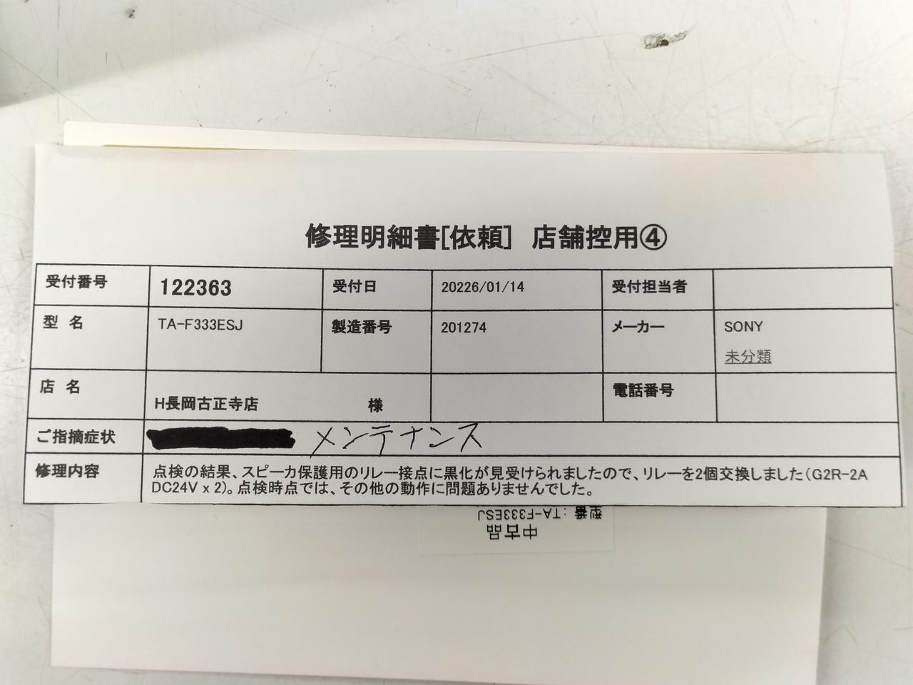 当店リペアセンターにてメンテナンス済 |