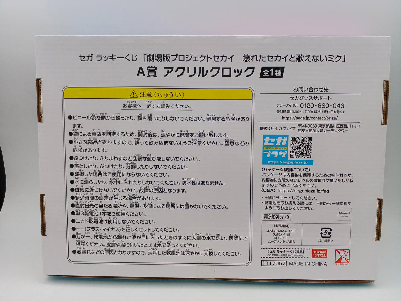 セガ ラッキーくじ 劇場版プロジェクトセカイ 壊れたセカイと歌えないミク A賞 アクリルクロック