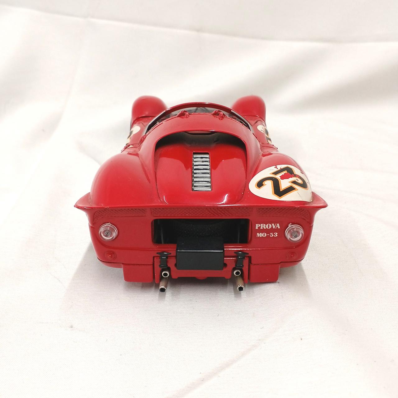 サイドウィンドウ両方共に欠損、正面パーツ一部に折れあり。前輪やや斜めになっております。 |