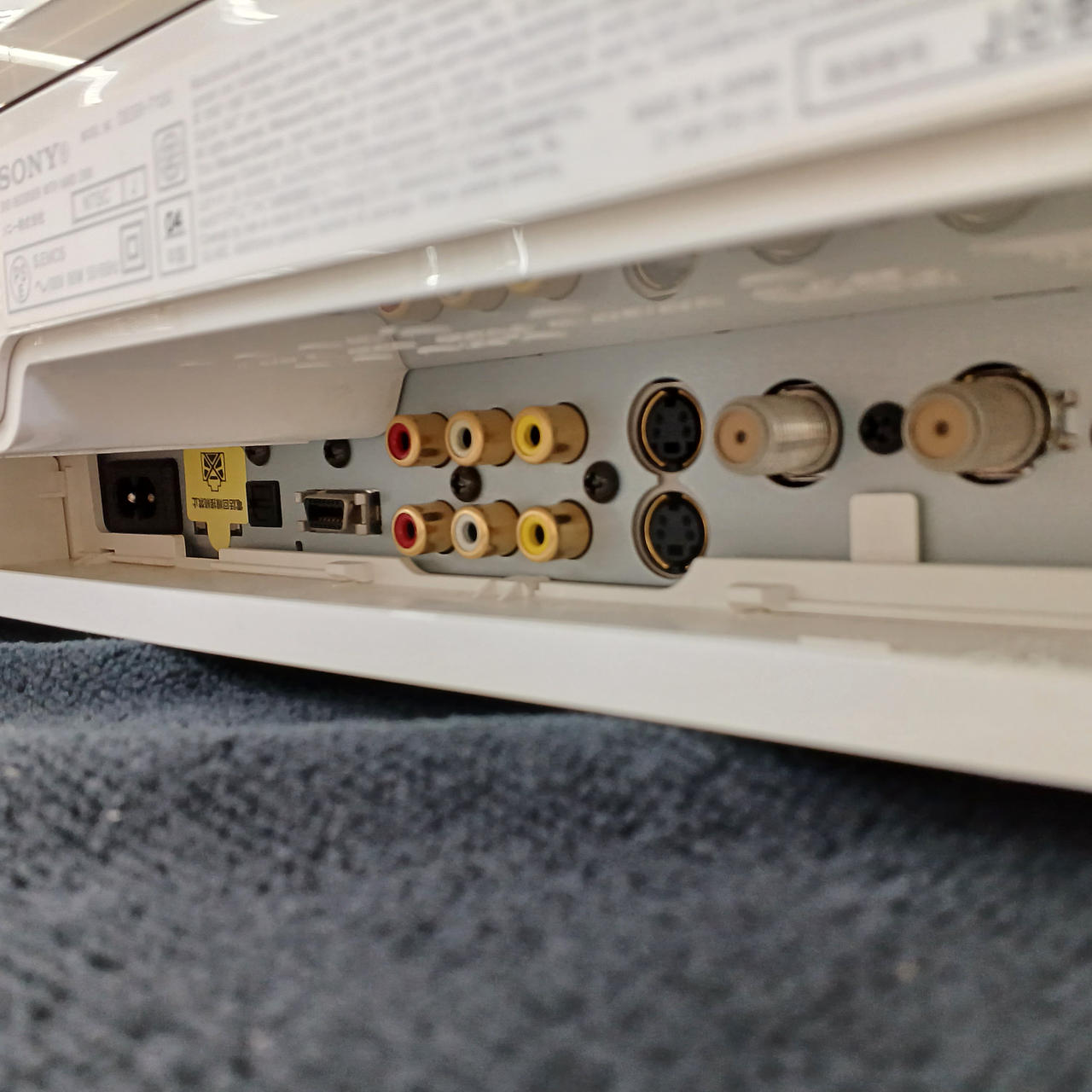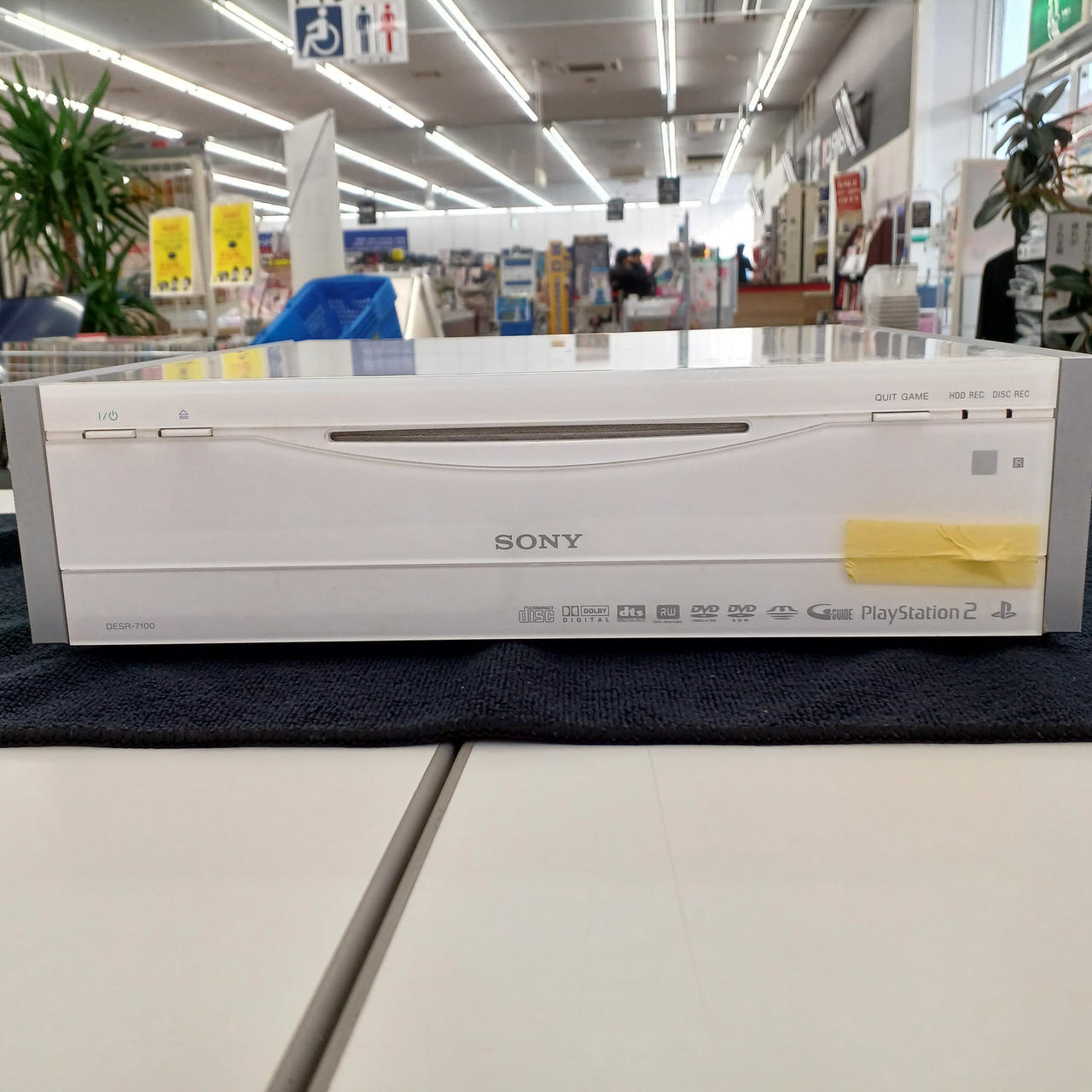 本体のみです。電源は入りましたが、ゲームソフトの読み込みが出来ませんでした。画像にもある通り、メモリーカードスロットを隠してある前面パネルの留め具が破損しています。