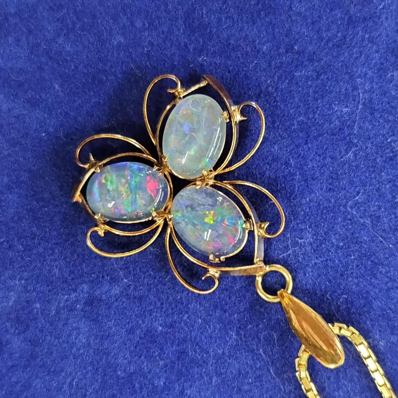 遊色石が美しいネックレス。ペンダントトップとチェーンは別々にできるので、お好みのものに変えるのも楽しいですね!