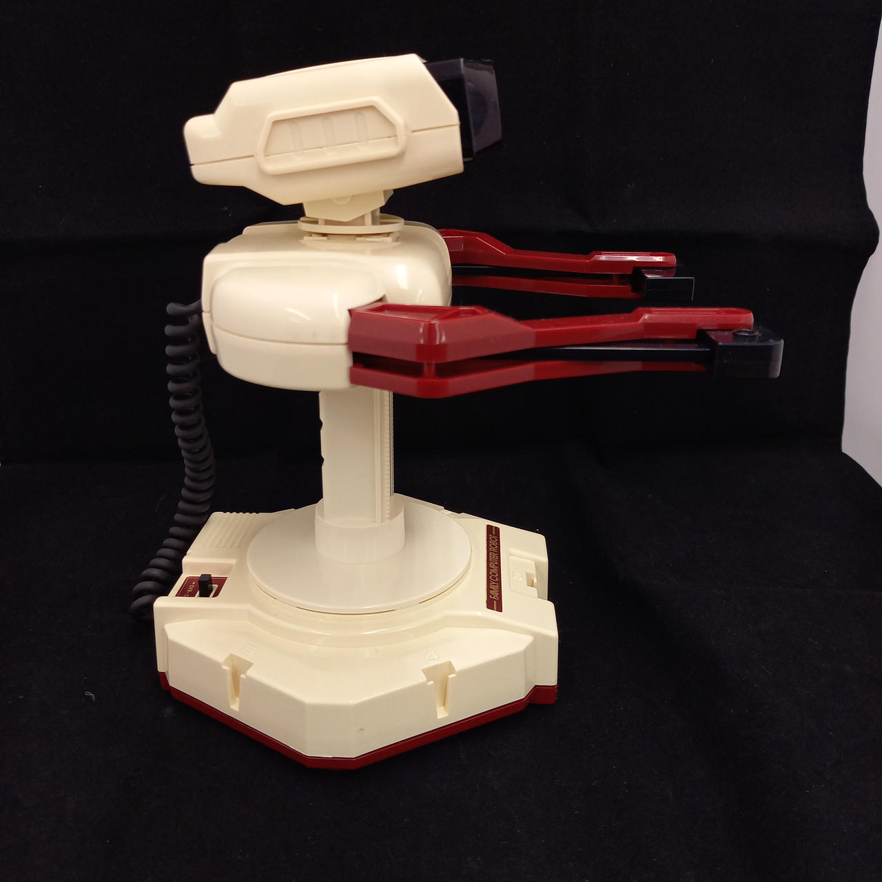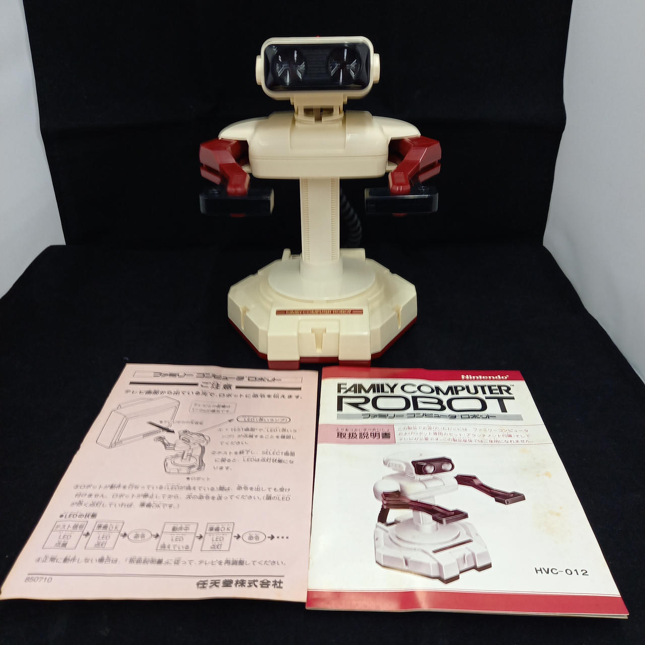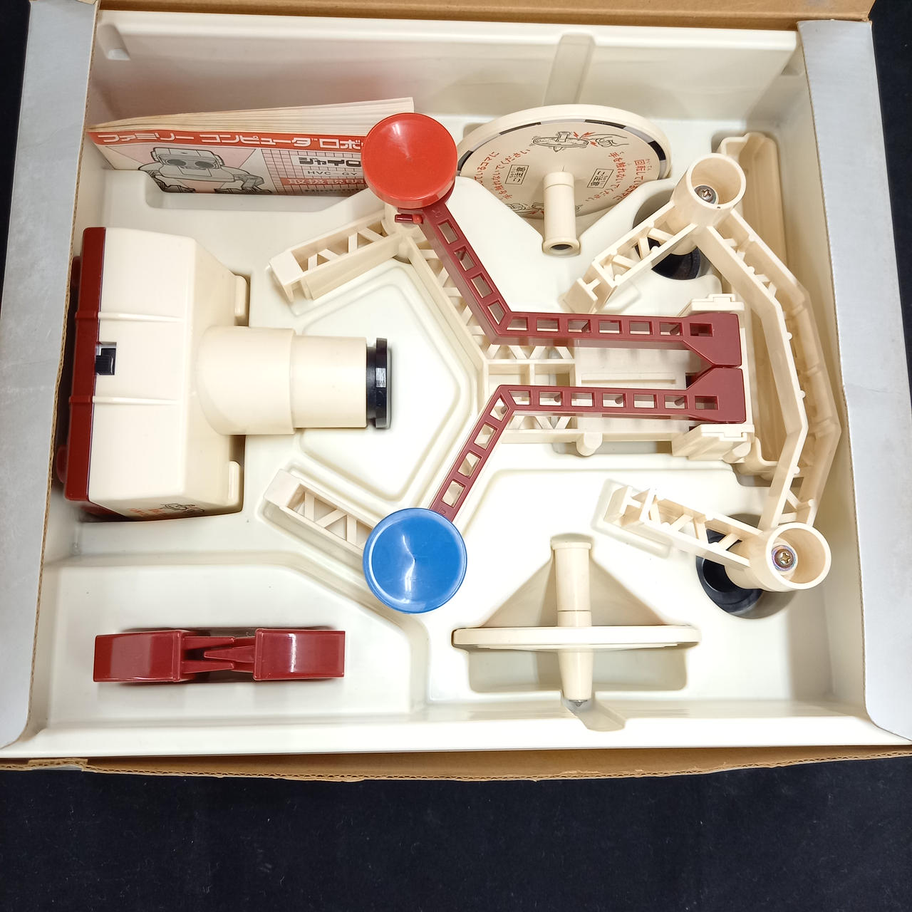 ロボット本体は電源入れたところ体を捻るウォームアップ動作?をしました。その際腕の位置が一番上まで持ち上がっています。腕を下げるにはゲーム中に腕を下げるコマンドを入力しないといけない為腕が下げられません。ロボットの内箱は腕を下げた状態で覆う形になっている為腕が上がった状態では箱に収められません。発想の際にはロボット本体はプチプチで梱包します。 |