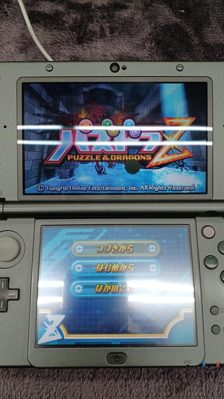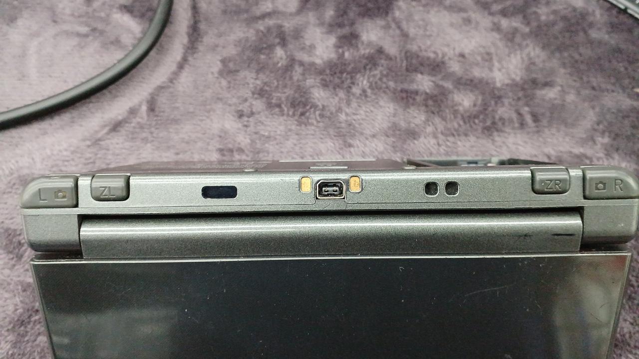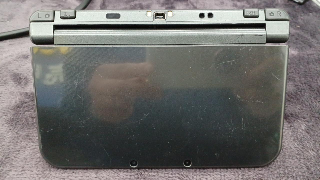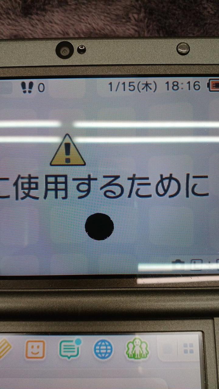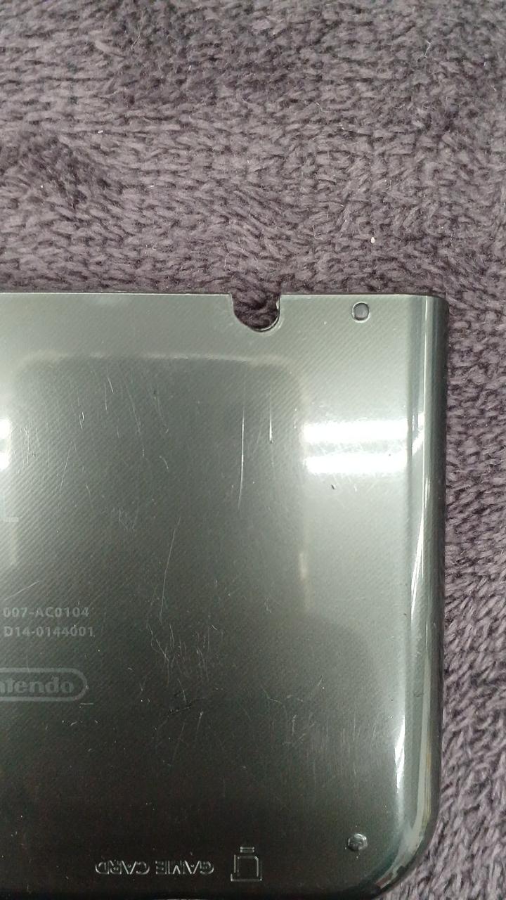 ゲーム起動します。バッテリーパック付きません。画面に黒い丸⚫があります。下画面はヤケがあります。裏のカバー破損しています。ネジも一つありません。 |