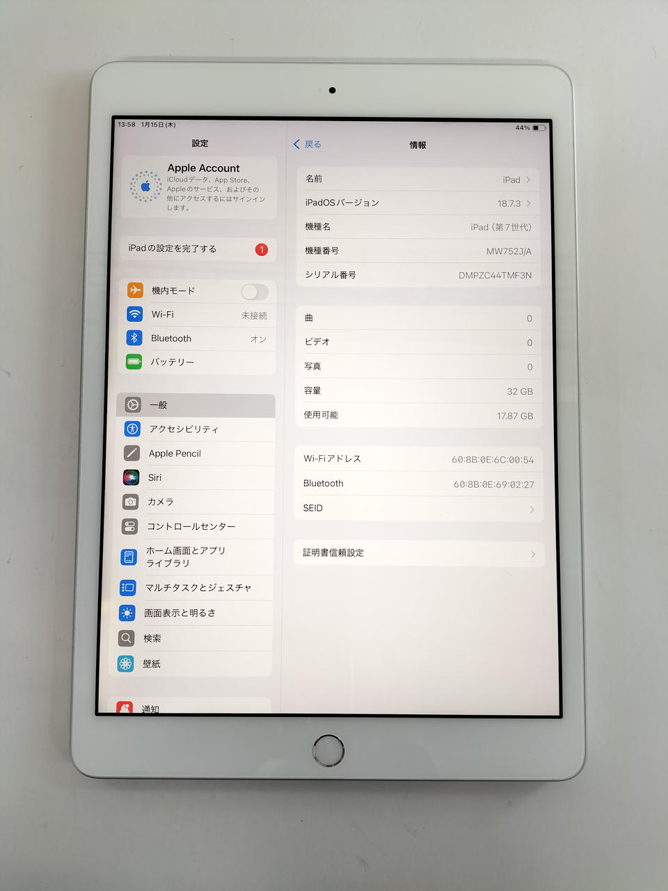 Wi-Fiモデル OS:IOS18.7.3 ROM:32GB |