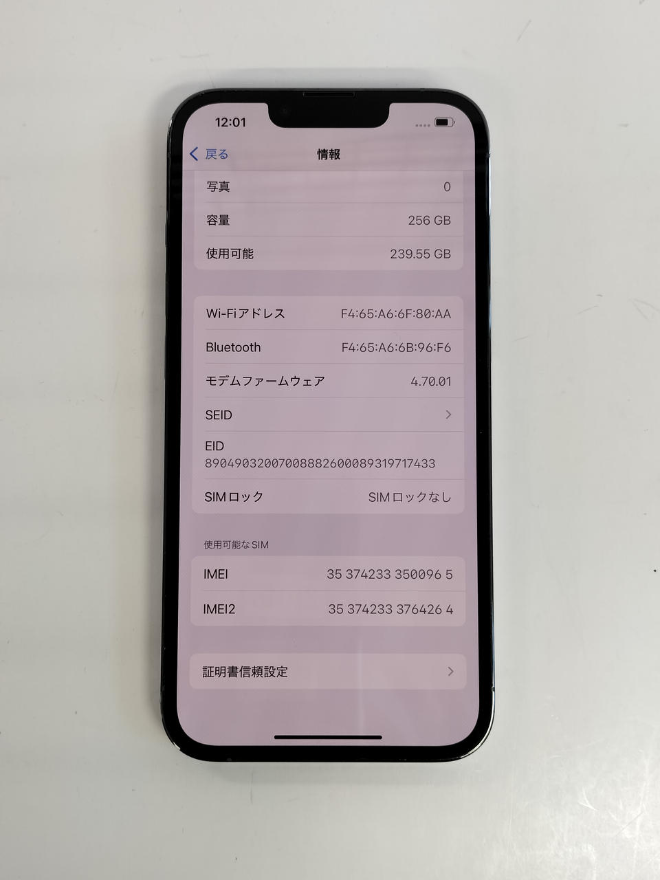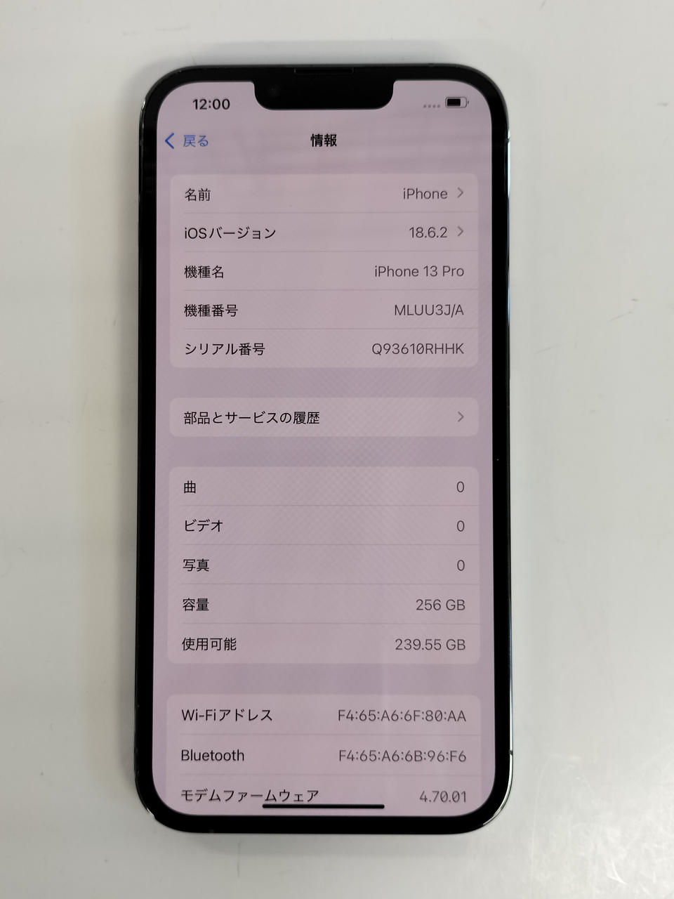カメラ画素メイン:12MP サブ:12MP 電池容量:90% IMEI:◯ |
