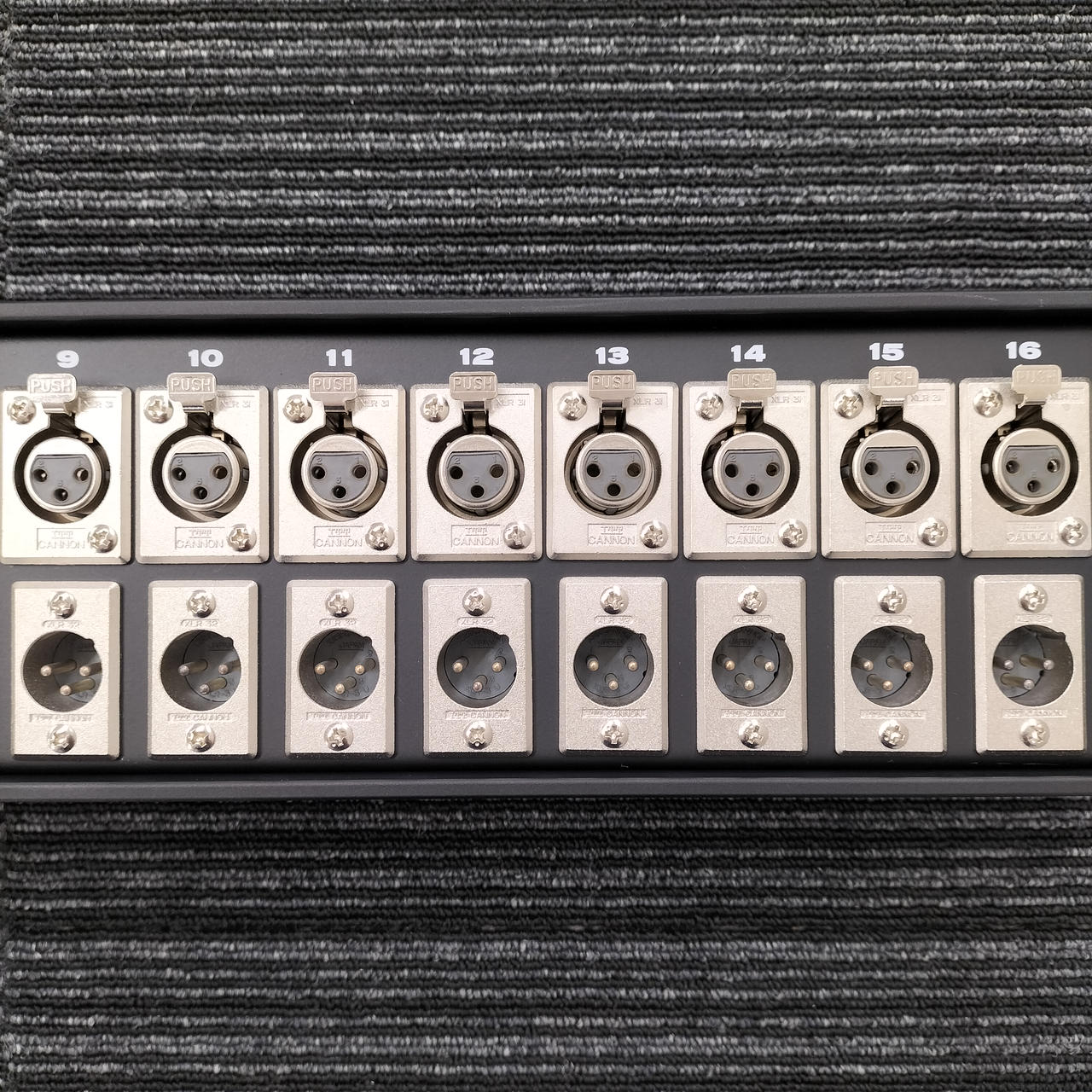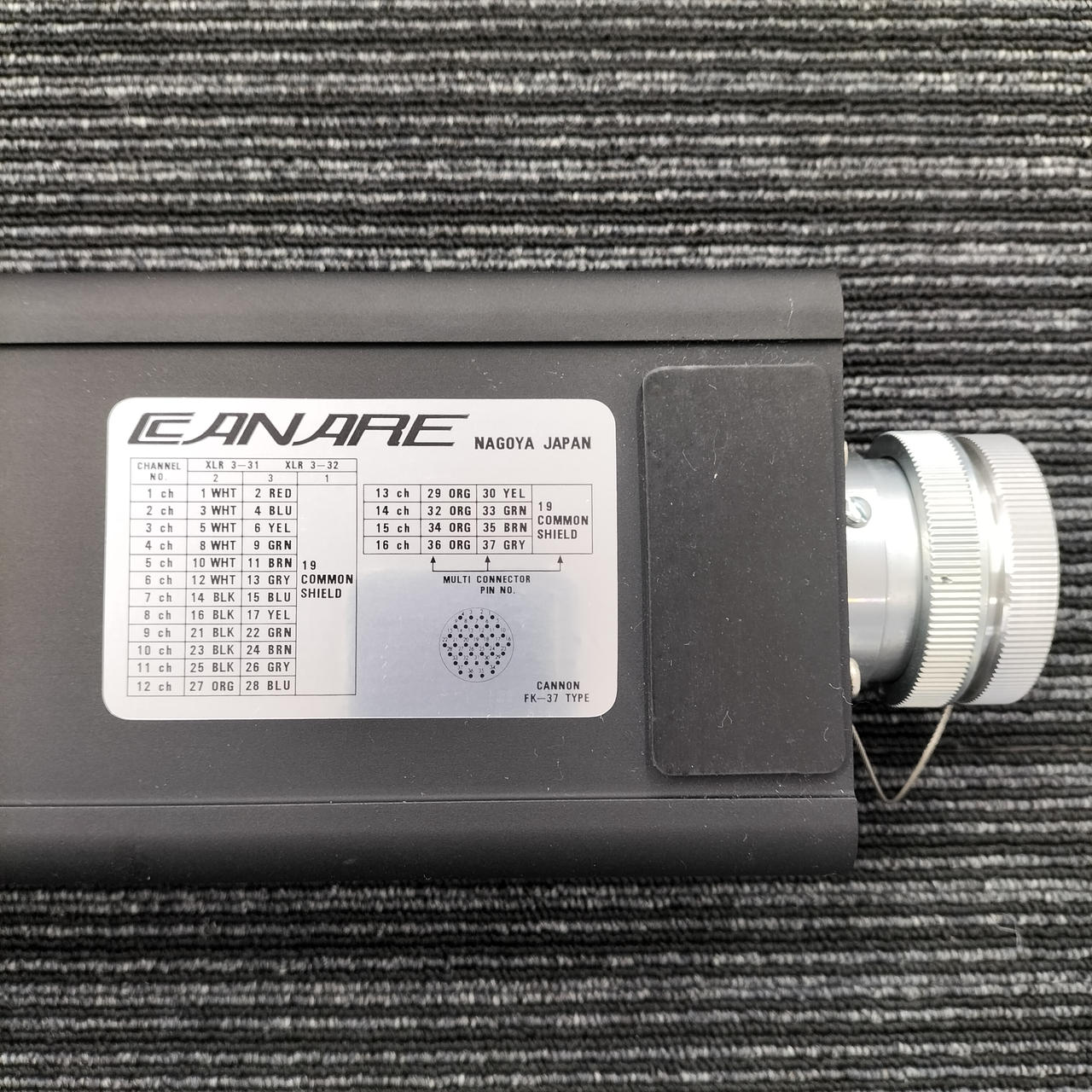 CANARE製の16CHパラボックス。マルチコネクター部分はメスです。 |