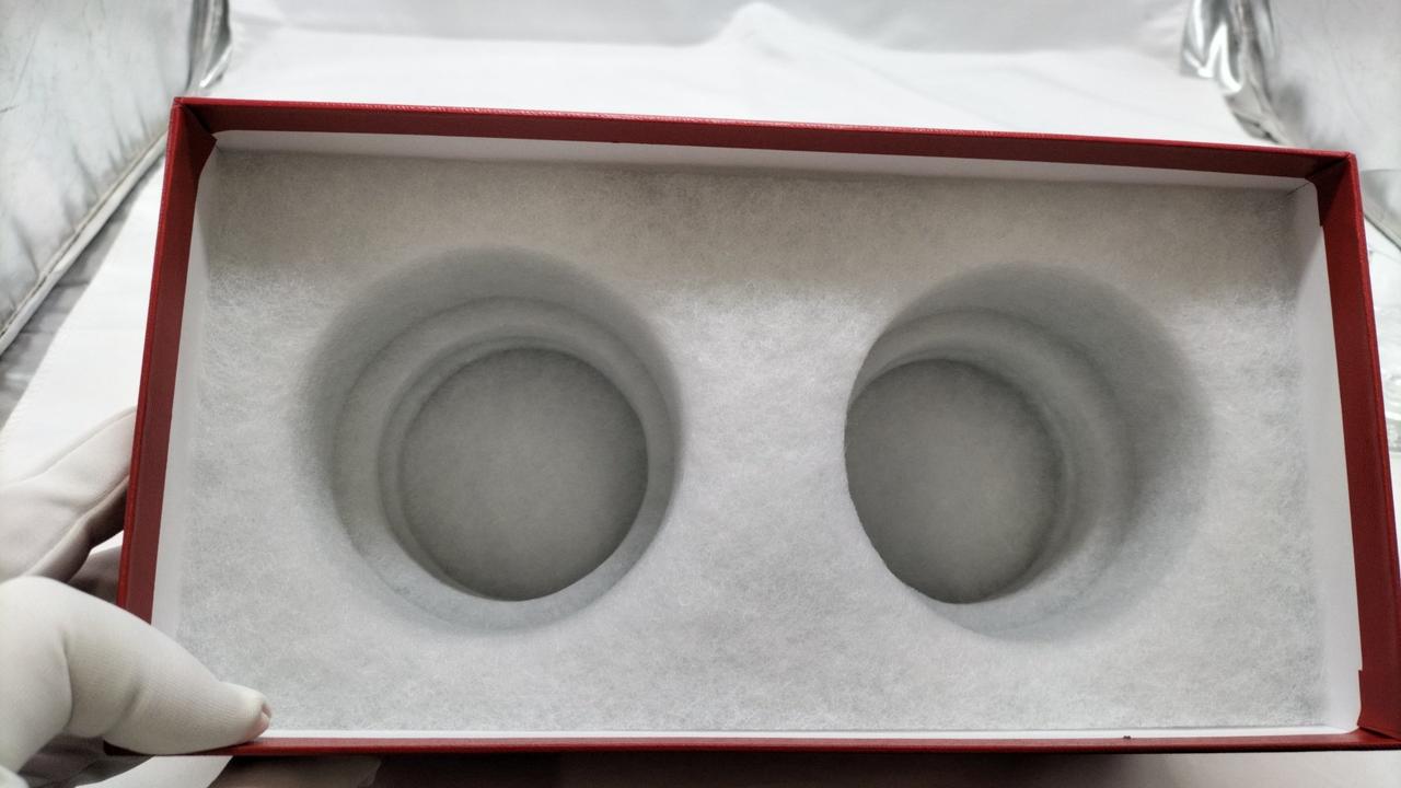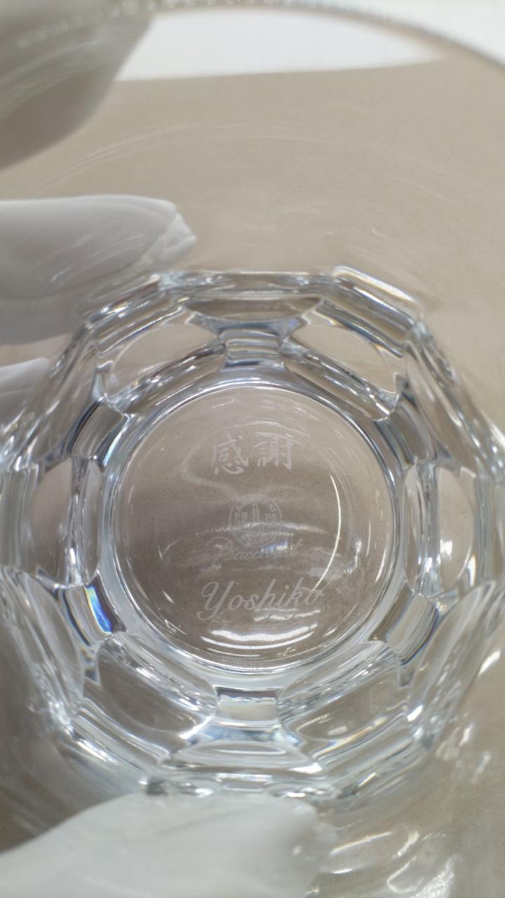 両方のグラスの底面に、それぞれ文字と名前が印刷されています。 |