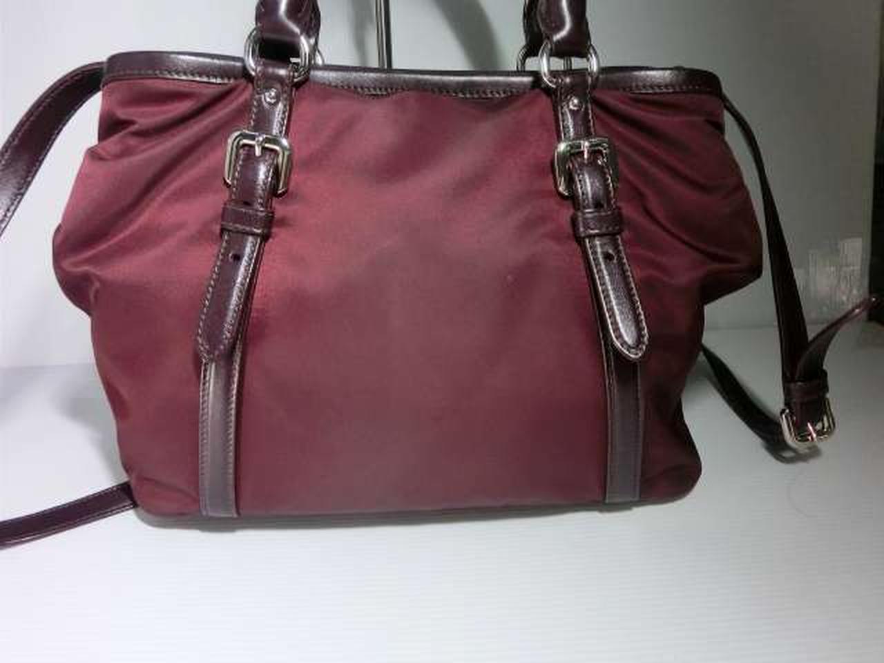 ロゴジャガード素材のナイロン製2WAYトートバッグで、リボンモチーフが特徴、使い勝手が良く普段使いから通勤まで幅広く人気です。 |