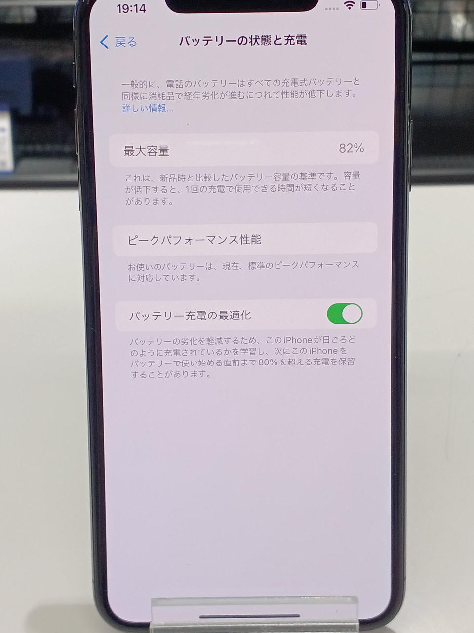 バッテリー最大容量:82% |