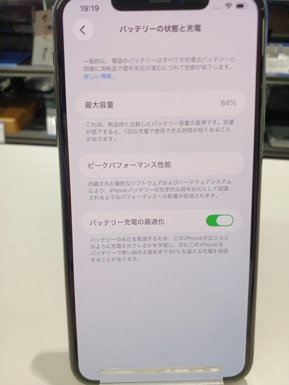 バッテリー最大容量:84% |