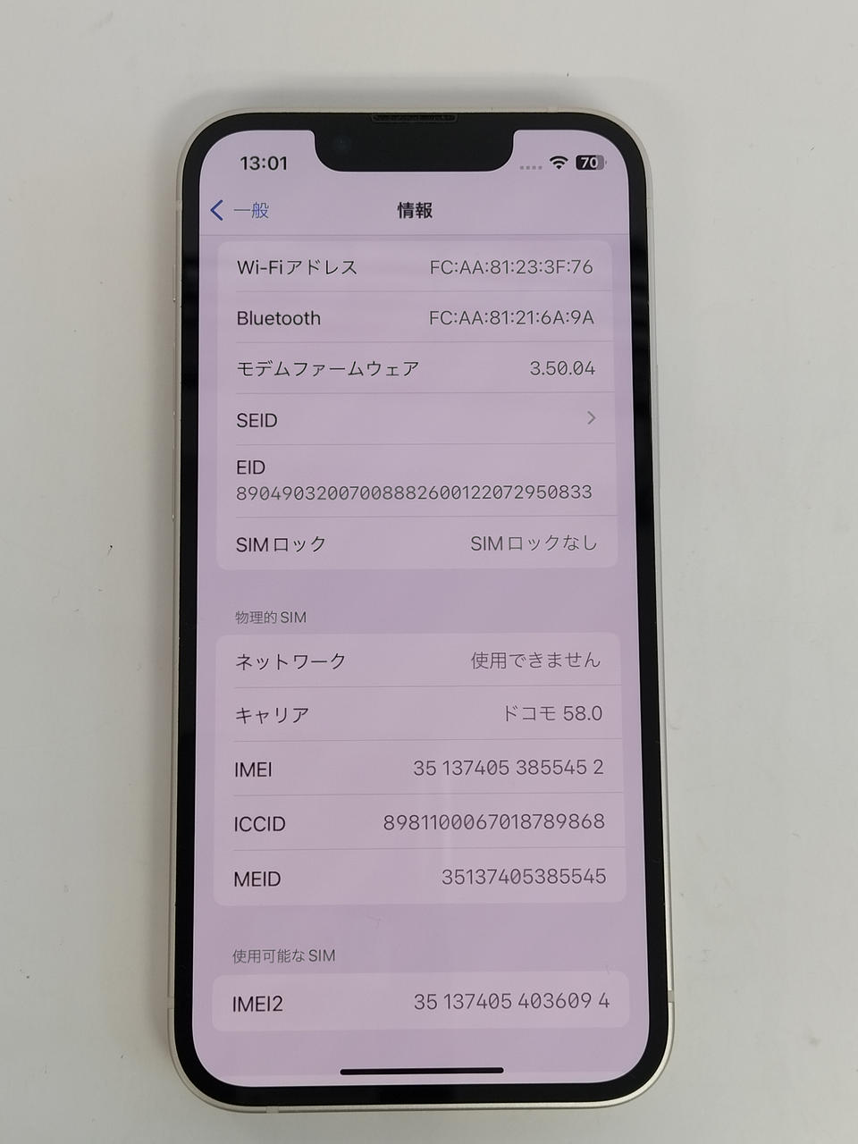 カメラ画素メイン:12MP サブ:12MP 電池容量:72% IMEI:◯351374053855452 |