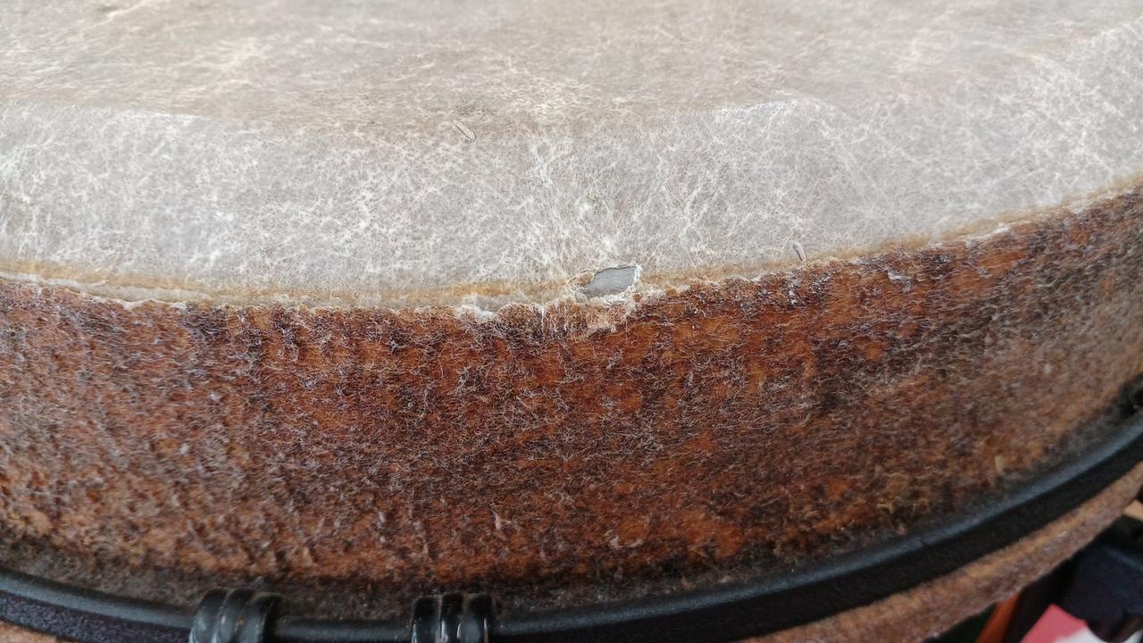 演奏に支障はなさそうですがキズなど有ります。打面のフチの革に剥げキズがあります。状態をご確認の上お求めください。 |