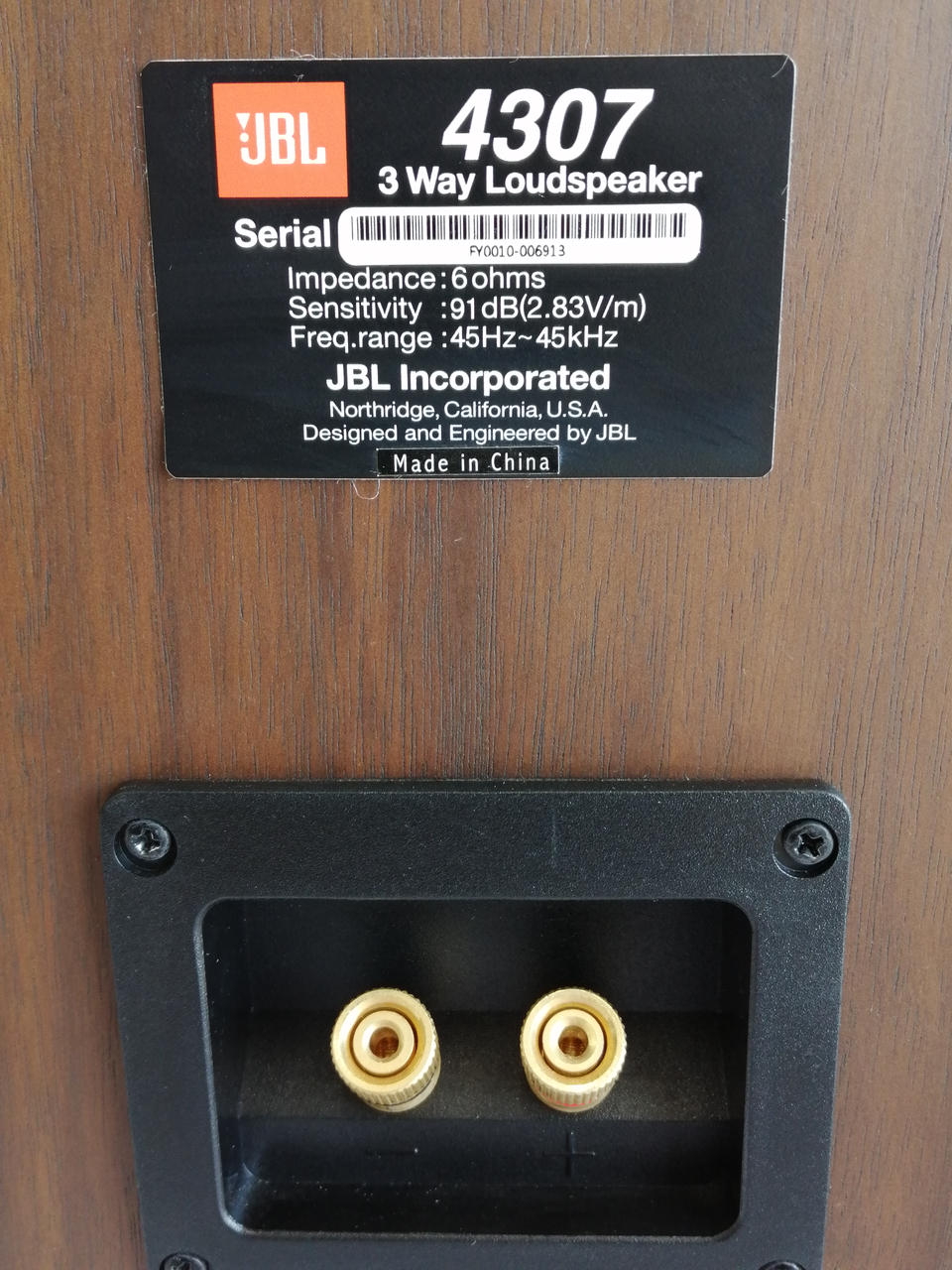 インピーダンス:6Ω 出力音圧レベル:91dB/2.83V/m |