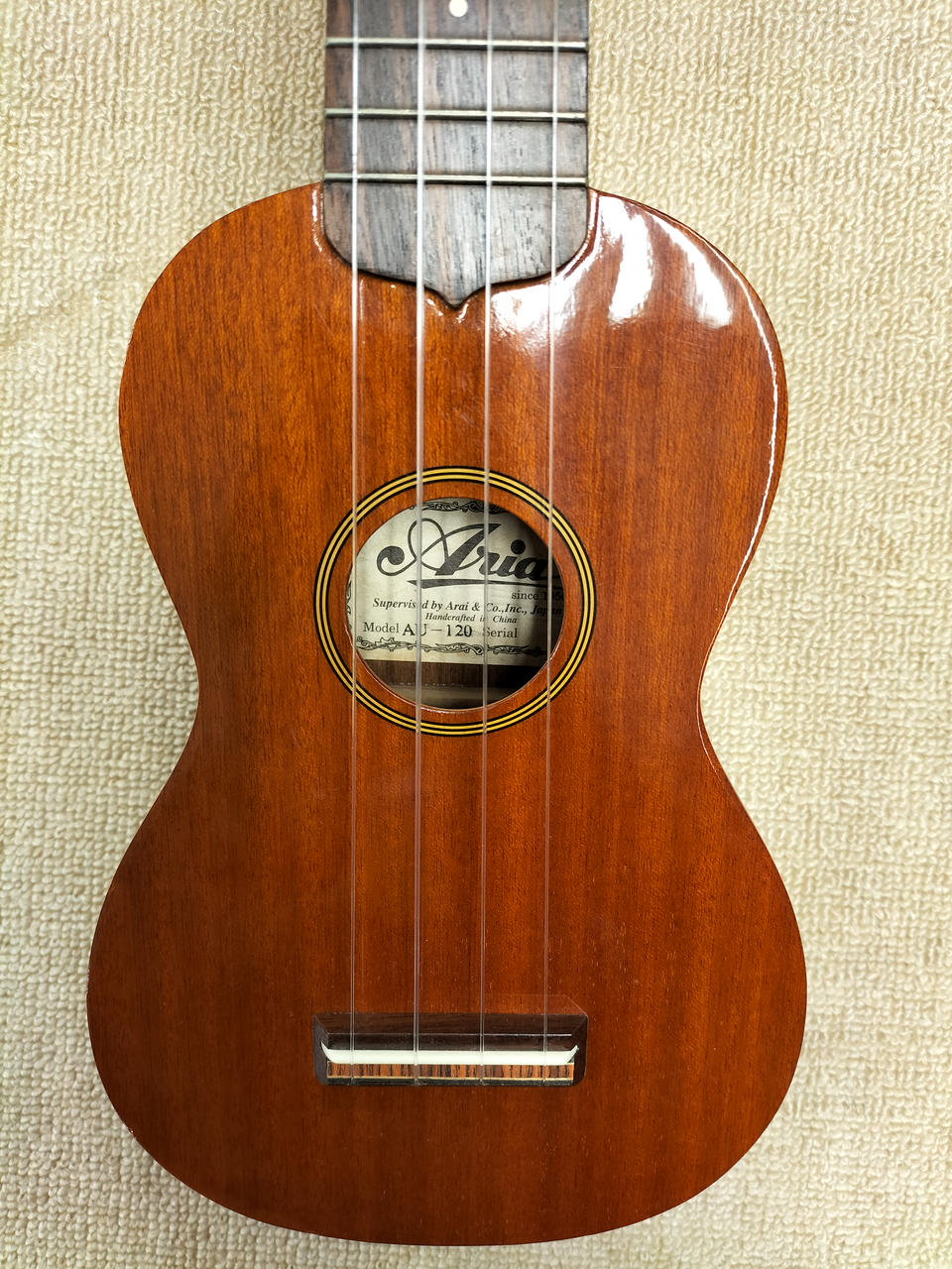 シンプルなデザインと艶消し塗装により、落ち着いた雰囲気を醸し出すアリアのソプラノ・ウクレレ!マホガニー材の採用による柔らかく甘いサウンドが特徴です。 |