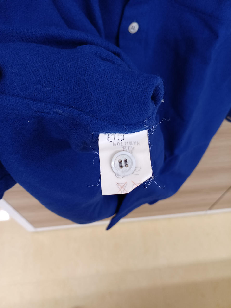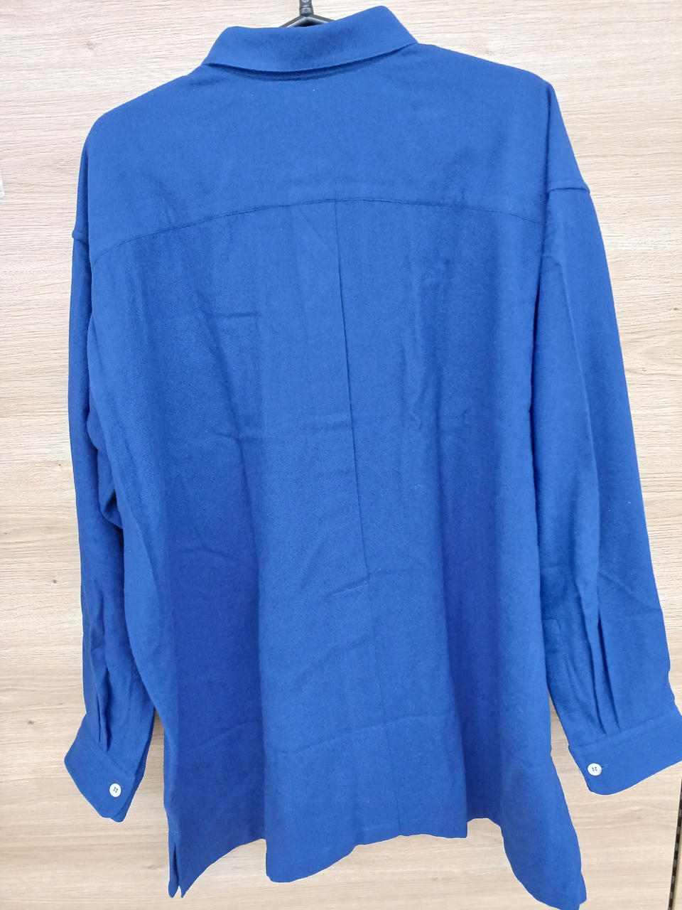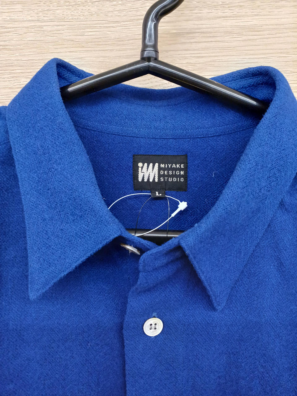 鮮やかな青が映えるシャツです。
