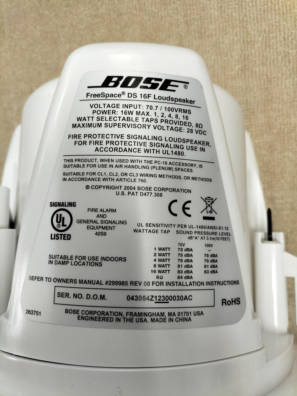 小型軽量デザインの天井埋込み型スピーカーです。許容入力:16W8Ω(70V/100V伝送対応) 重量:1.9Kg
