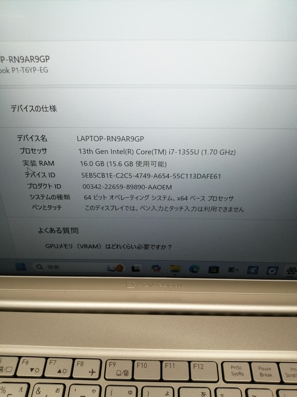 CPU:Corei7-1355U@1.7GHz RAM:16GB(PC5-41600) |
