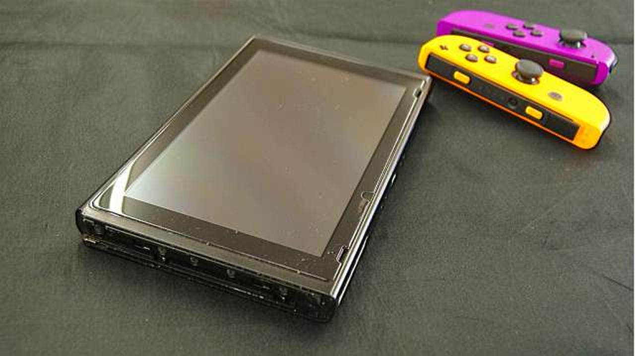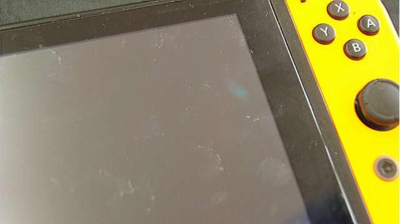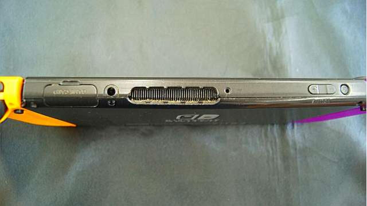 本体膨らみ等あるようです。液晶右端に青く映る影があります。ネジが幾つかありません。 |