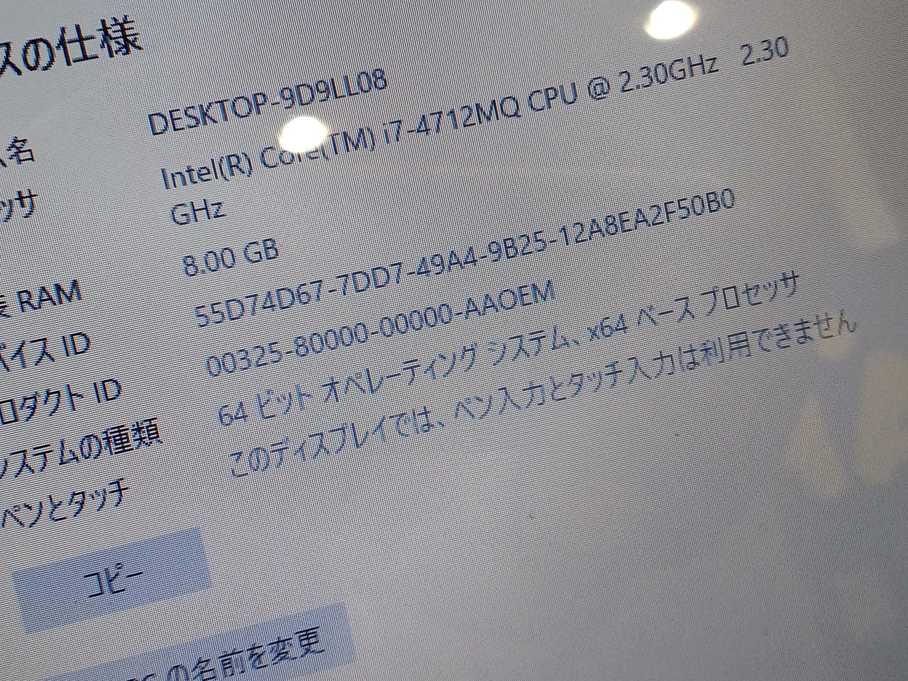 i-4712 メモリ:8GB HDD:1TB BDドライブ |