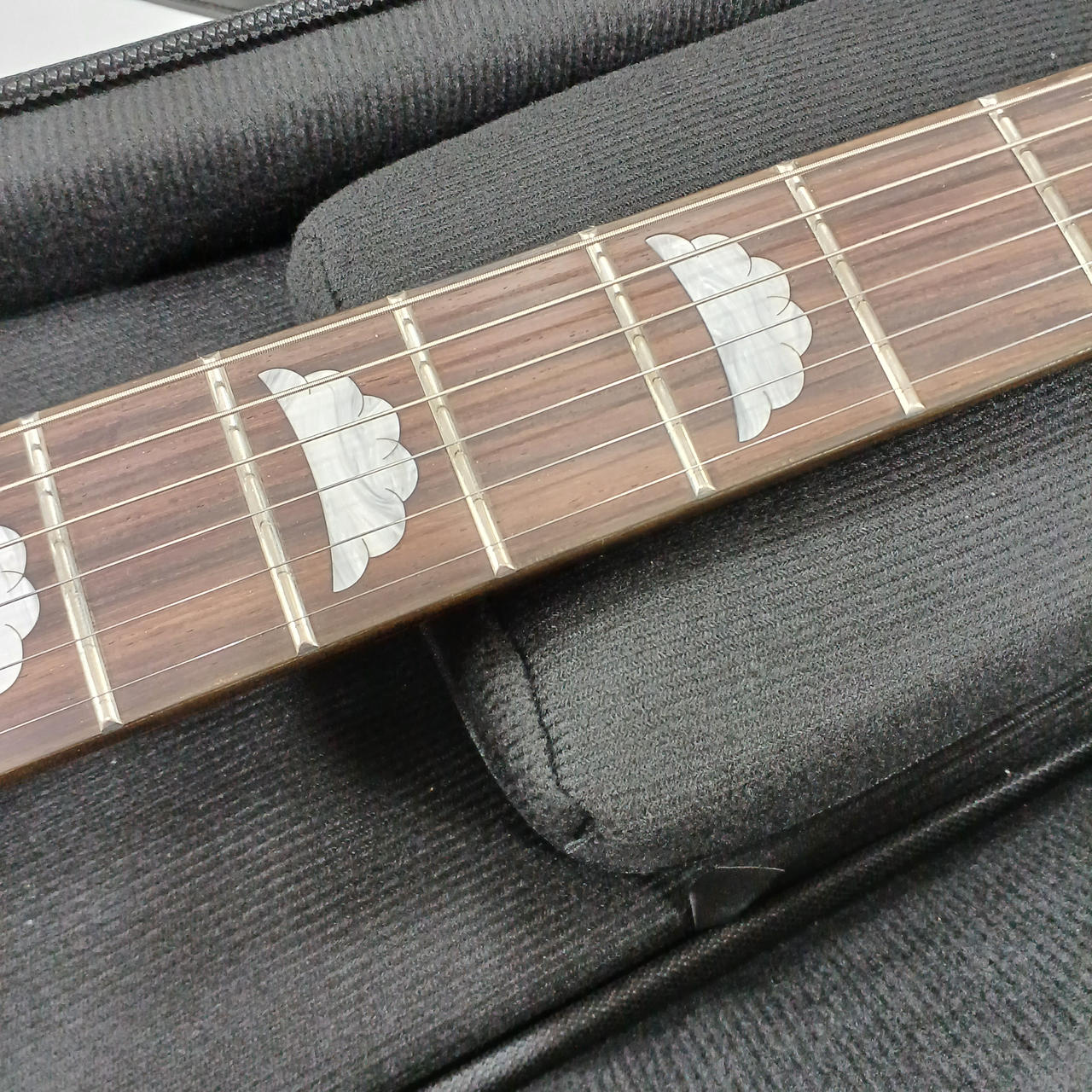 ネック:ほぼストレート、トラスロッド:左右余裕あり、弦高:(6弦約2.25mm/1弦約2.0mm)
