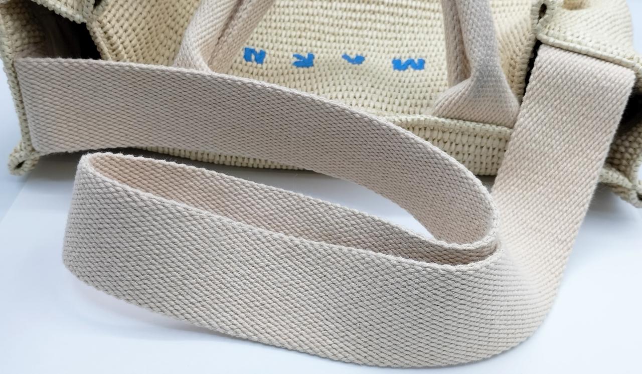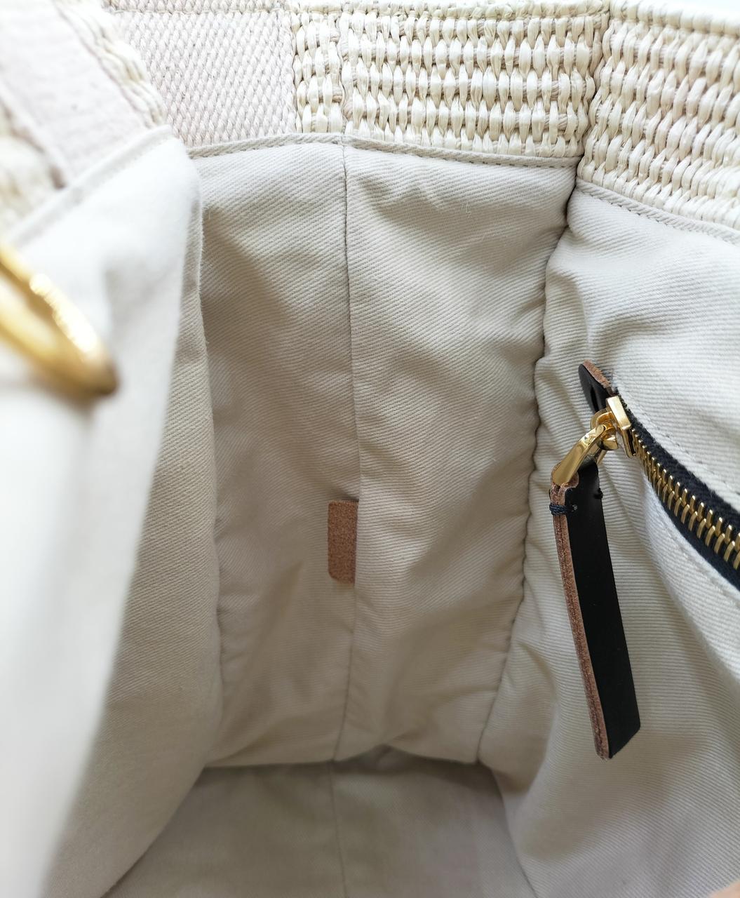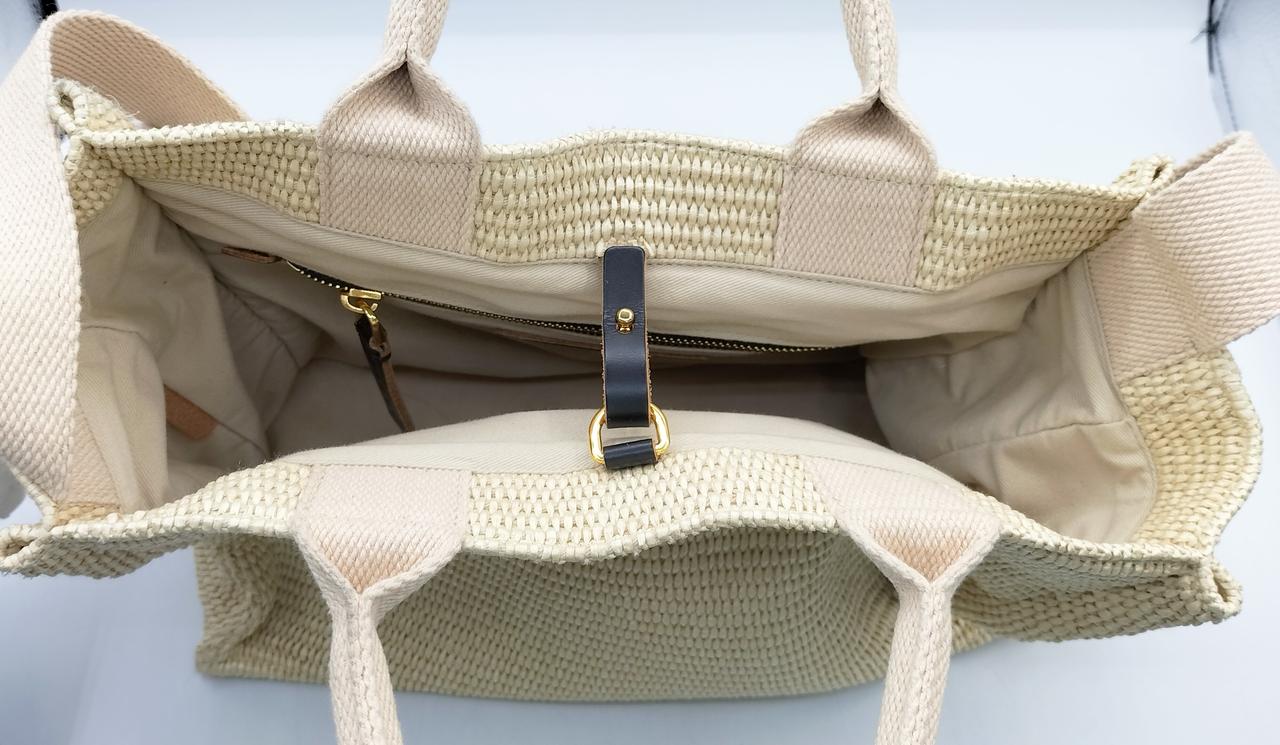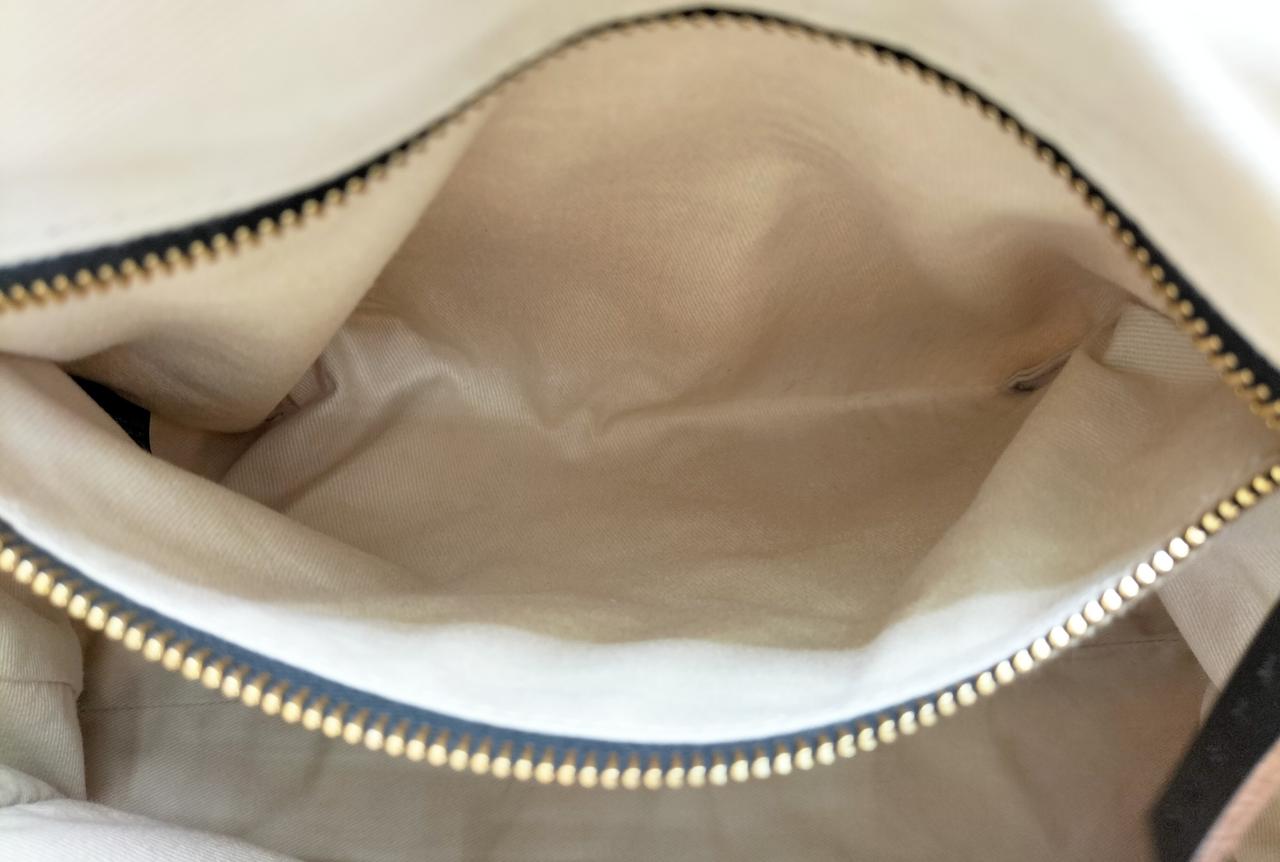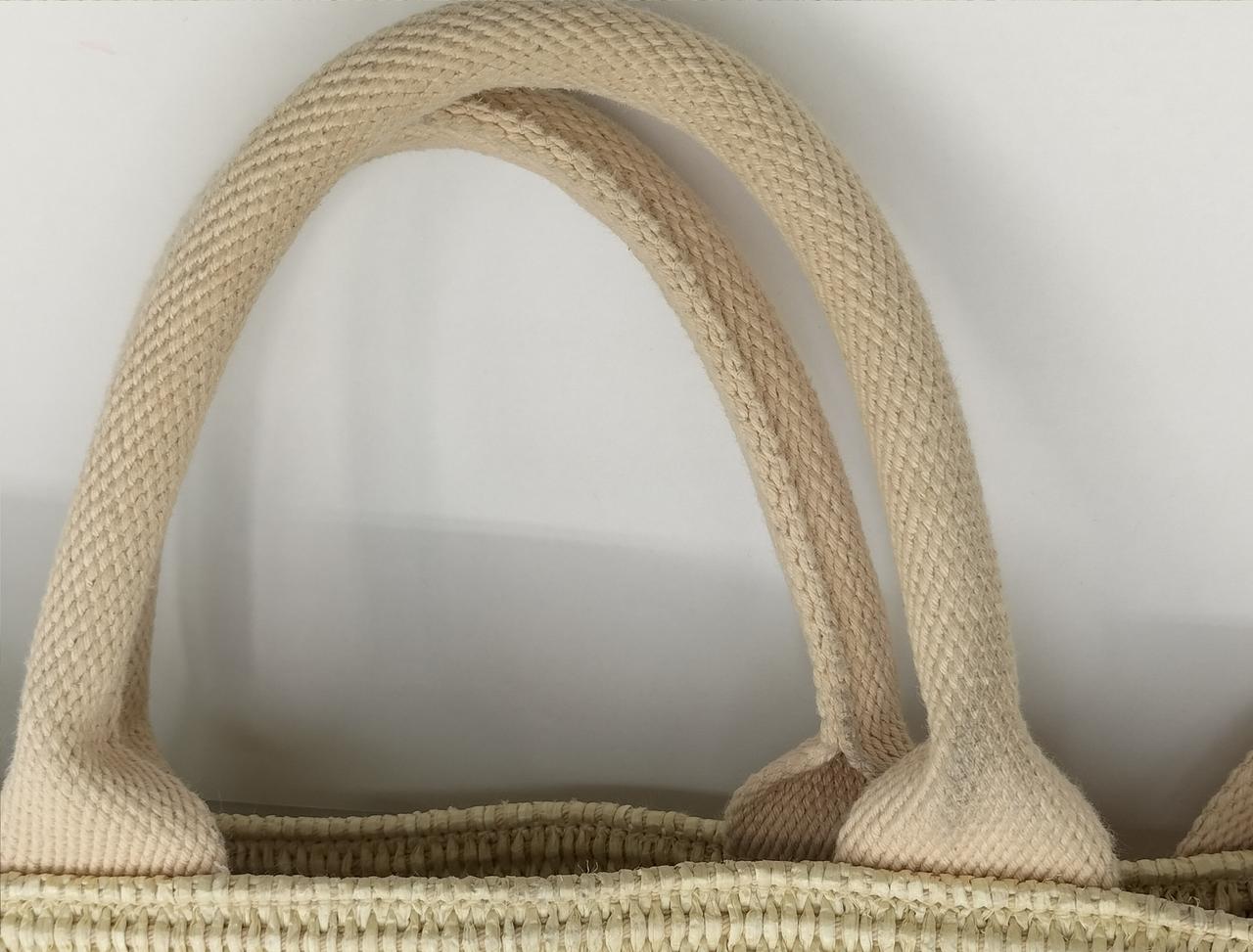 ハンドルとロングストラップがつき、手提げにも肩掛けにもできて便利です。 |