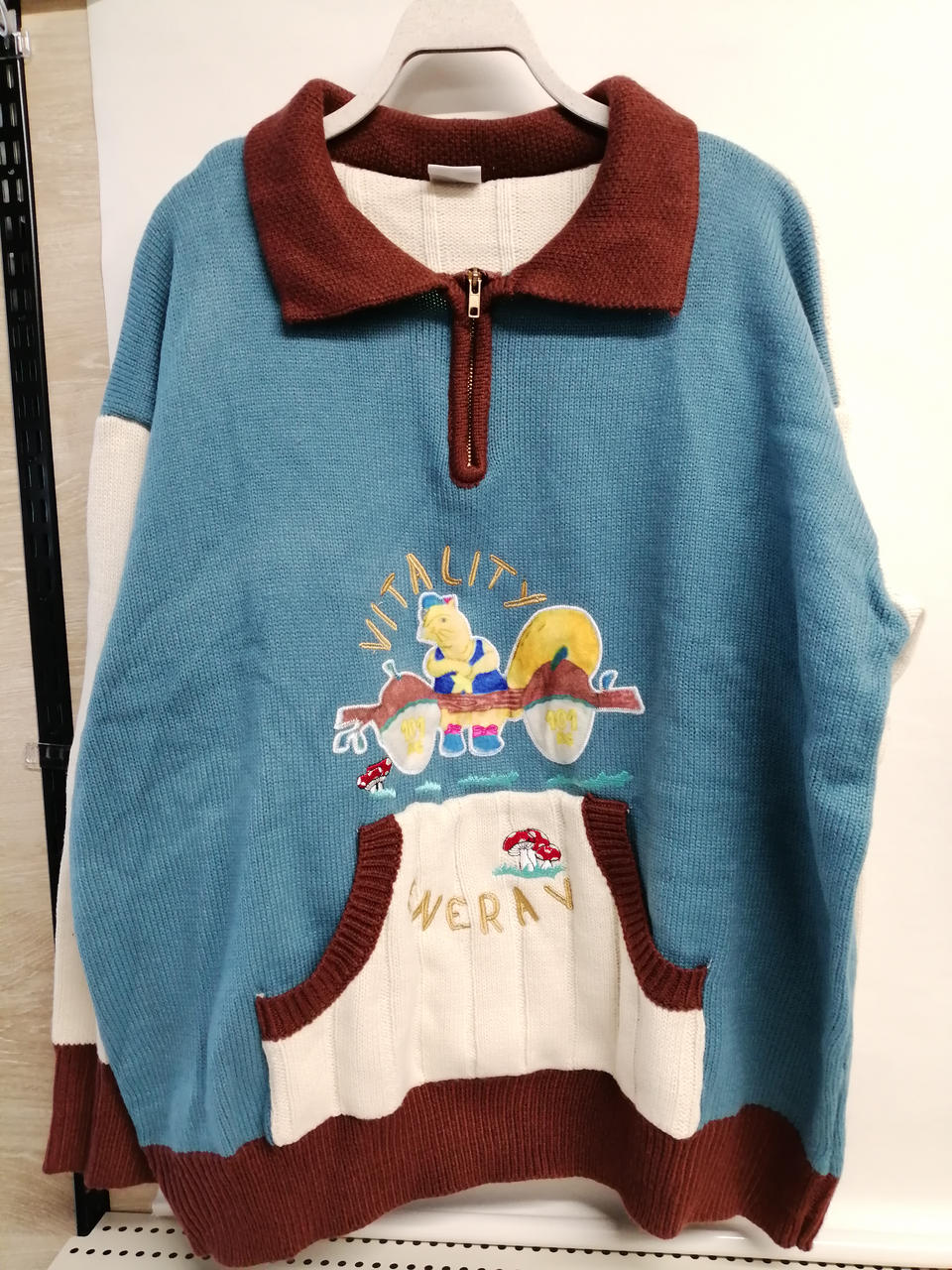 古着風キャラクター刺繍ポロニット