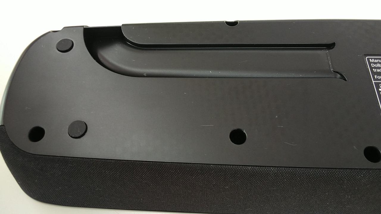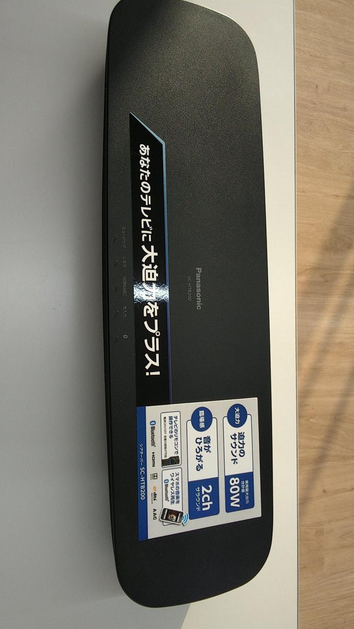 コンパクトなデザインで、テレビの足元に置いても画面が見やすく、視聴のじゃまにならないホームシアタースピーカーBLUETOOTH対応 HDMI出力×1(ARC対応) 実用最大定格出力:40W+40W |