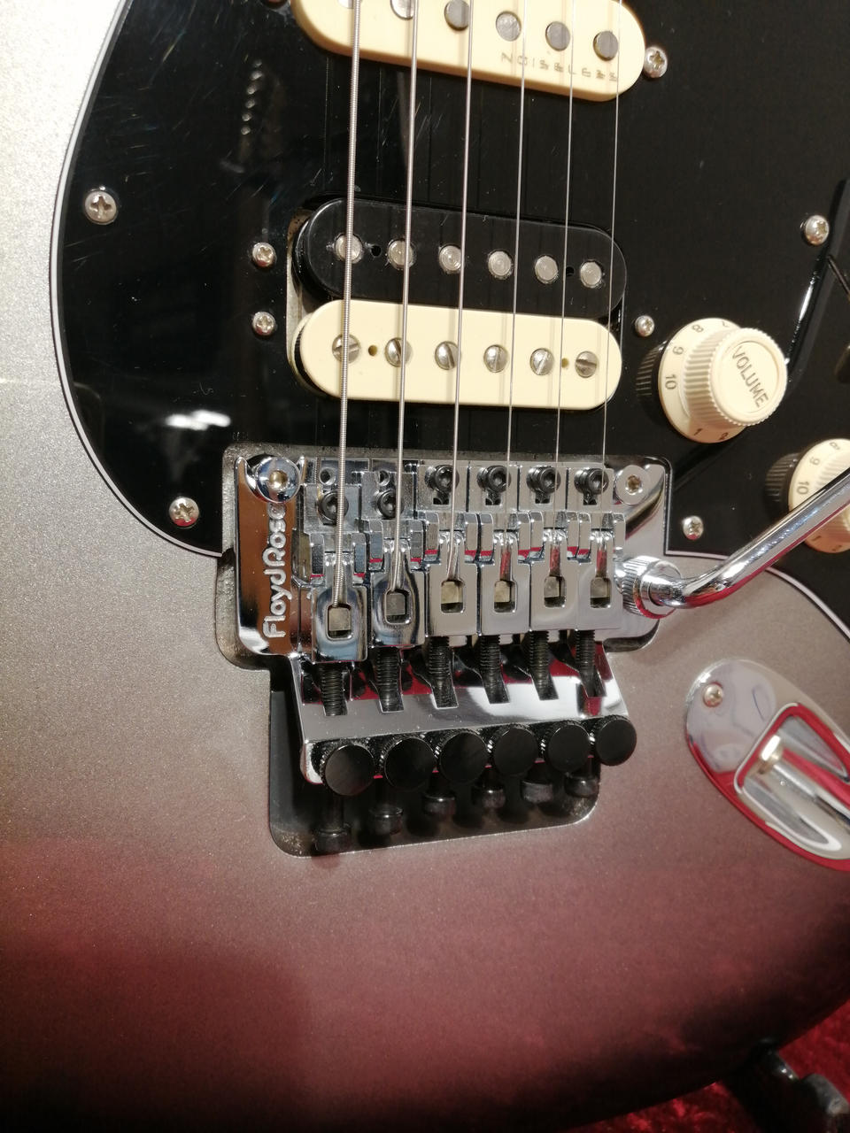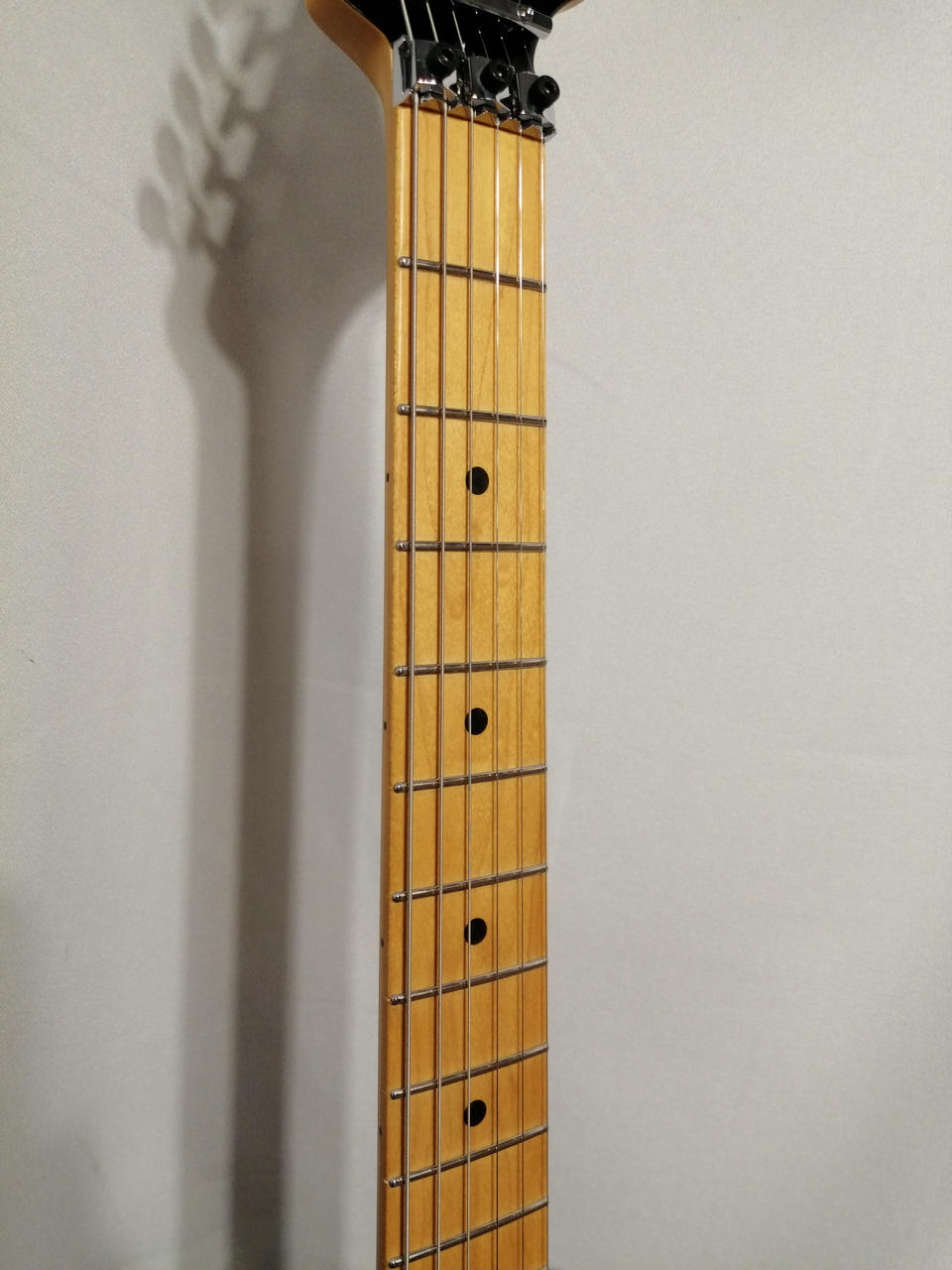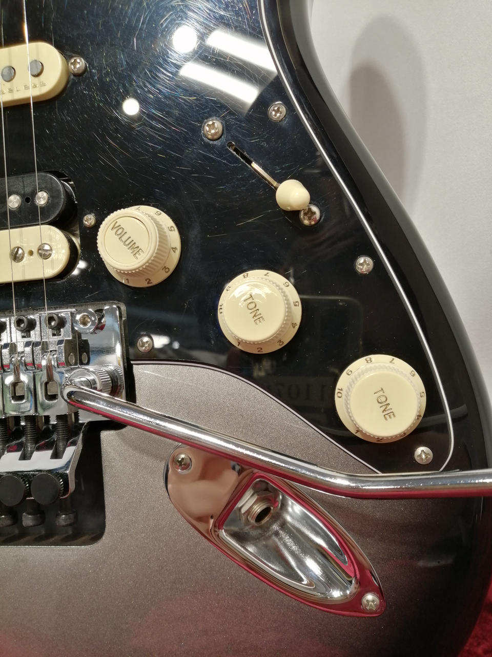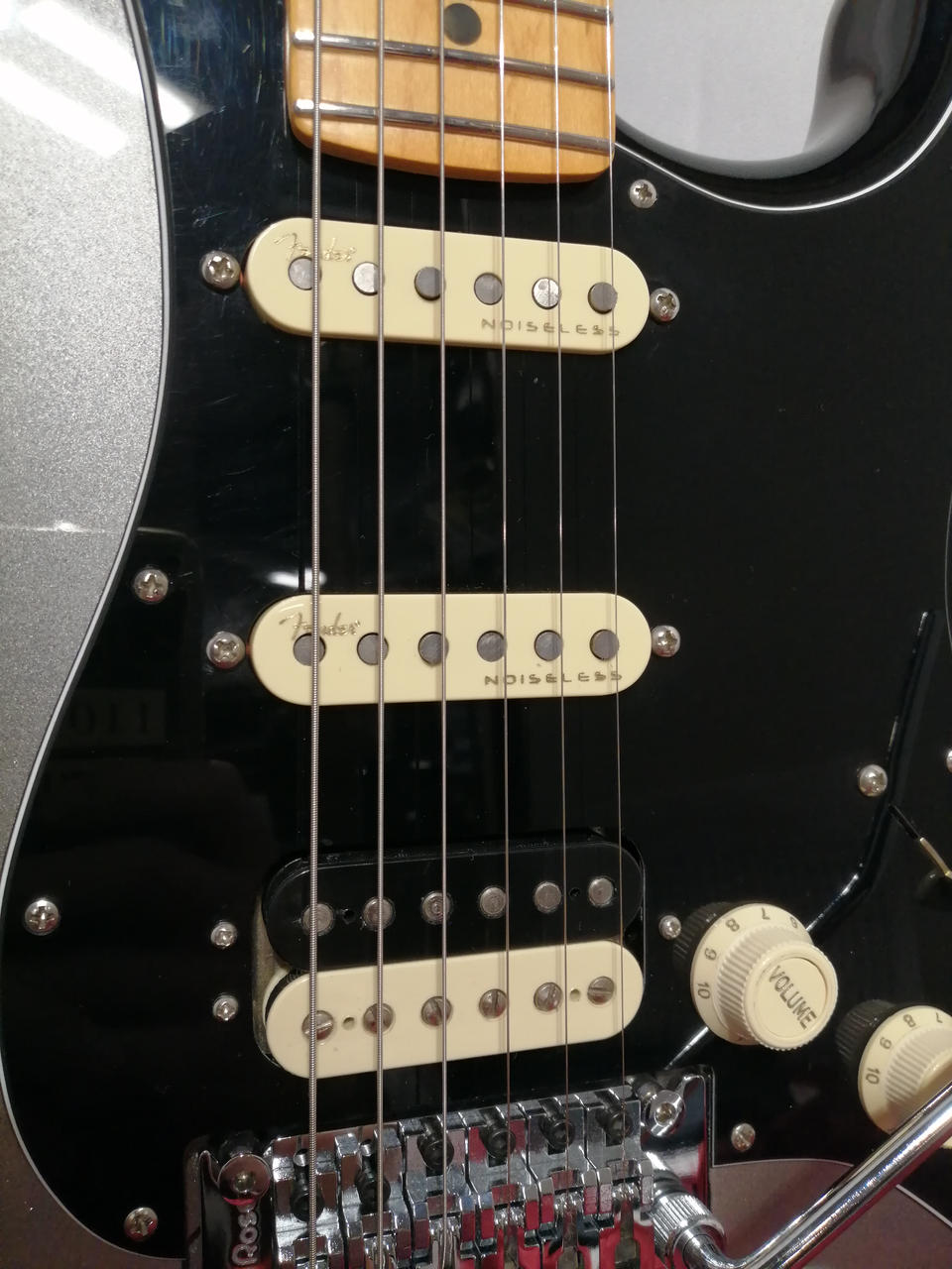ステンレススチールミディアムジャンボ22フレット、10-14インチコンパウンドラジアス指板、Ultra Noiseless Vintage P.U搭載。 |