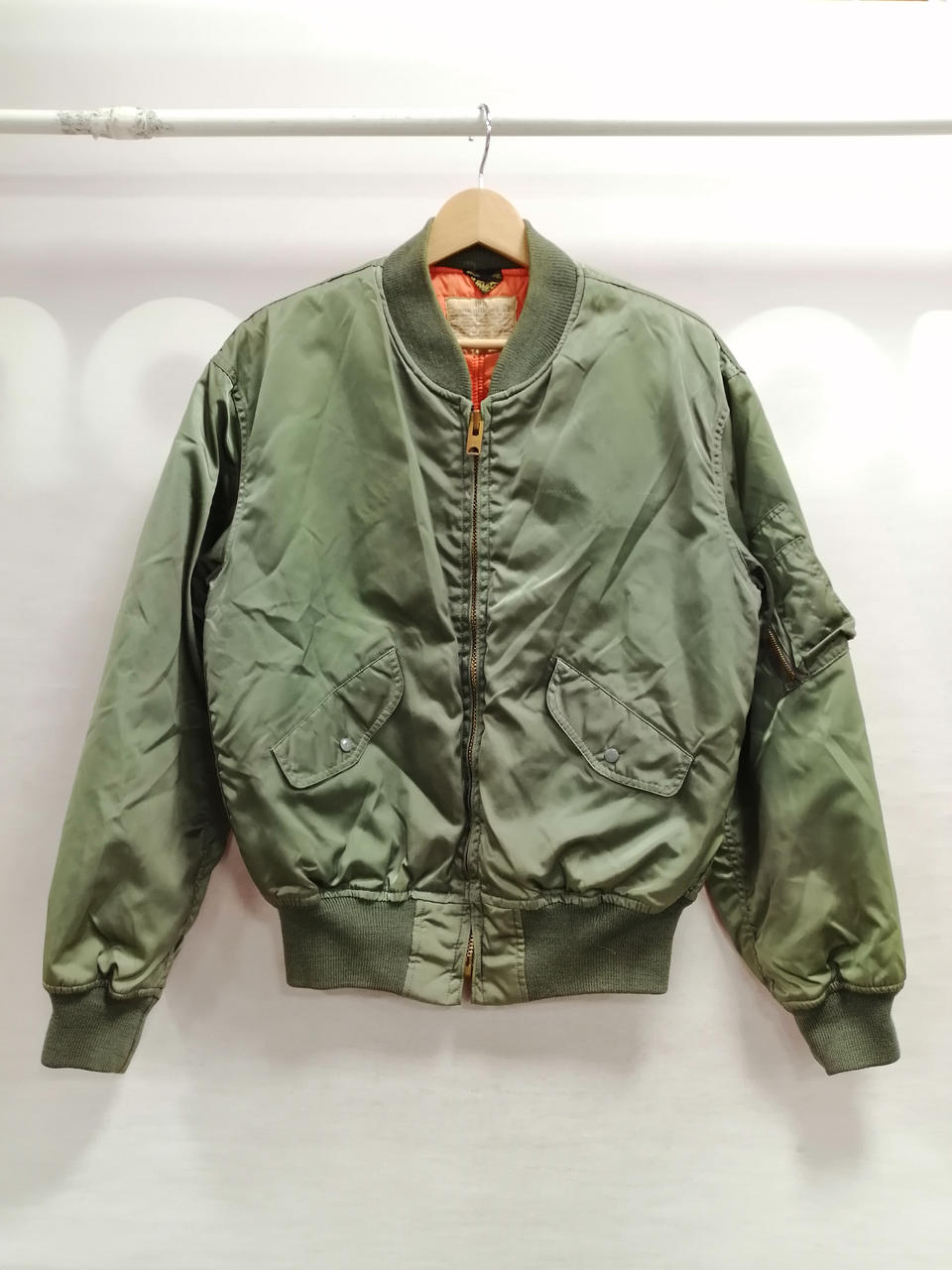 ヒューストンのエムエーワンジャケットになります。左胸と右腕にワッペンを外したあとがございます。状態考慮品となってますが、まだまだご着用いただけます。 |