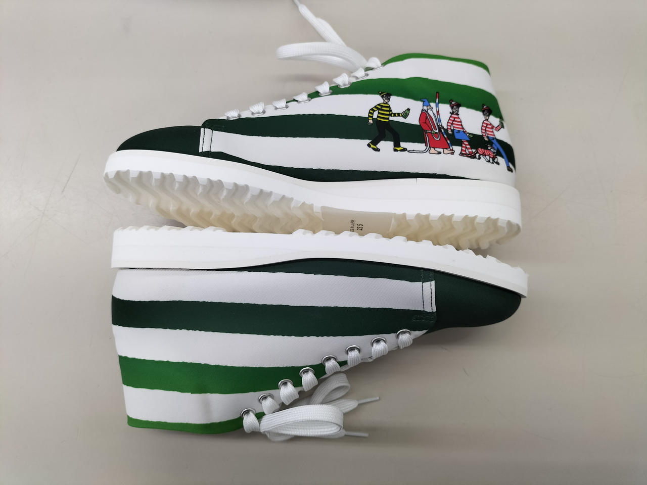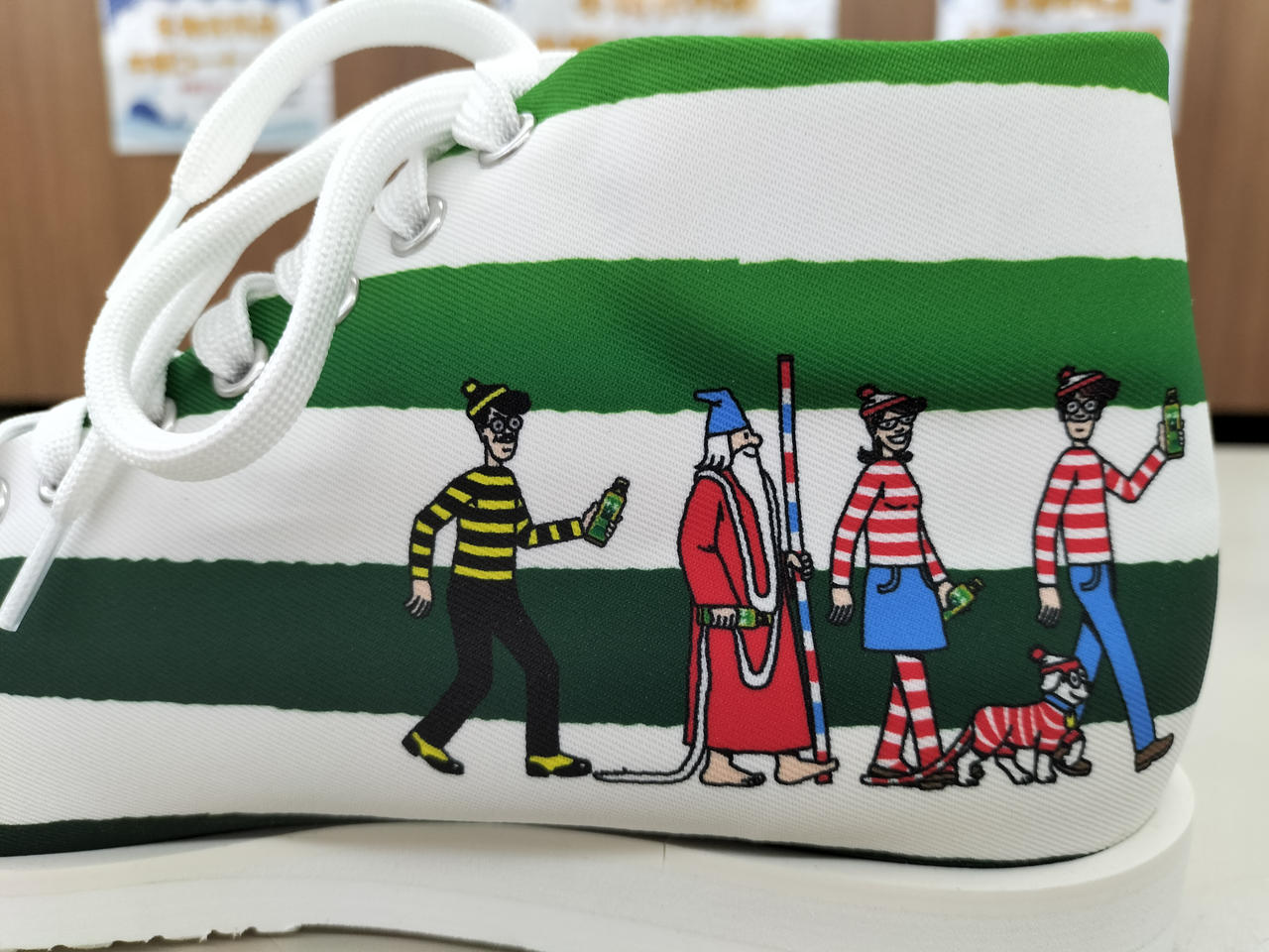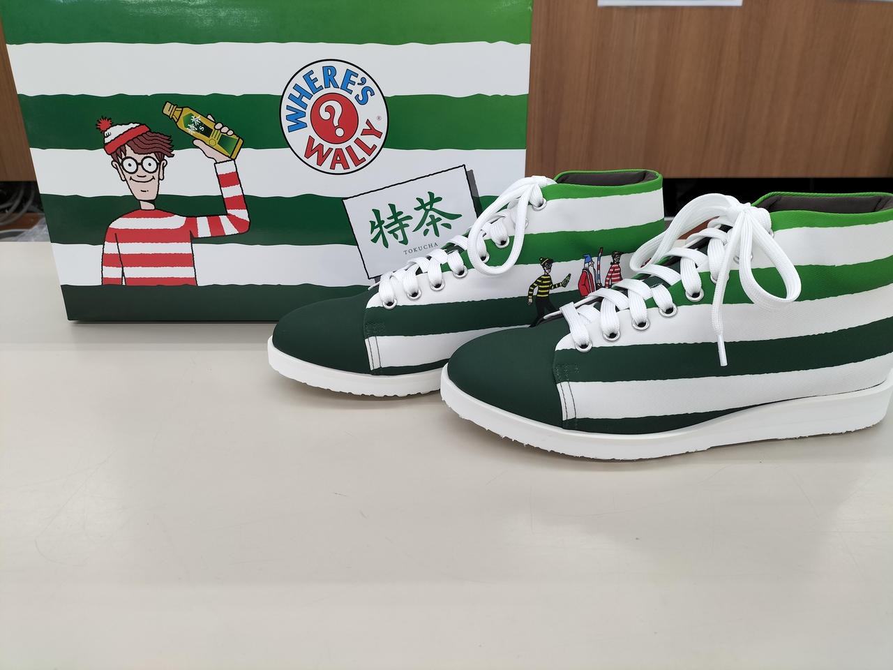 特茶とウォーリーのコラボスニーカー、ストライプデザインです。