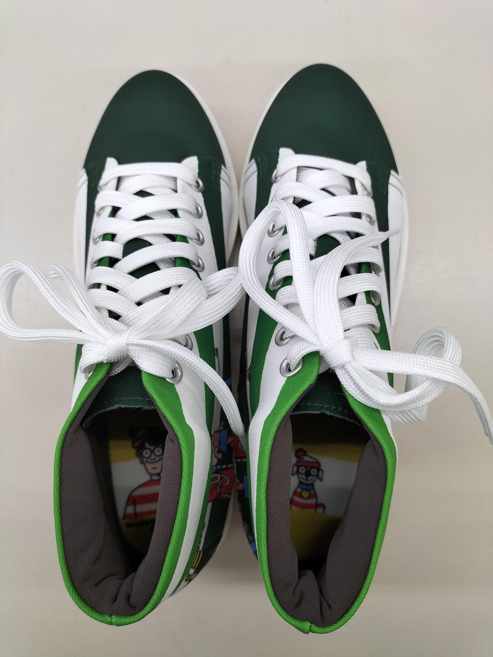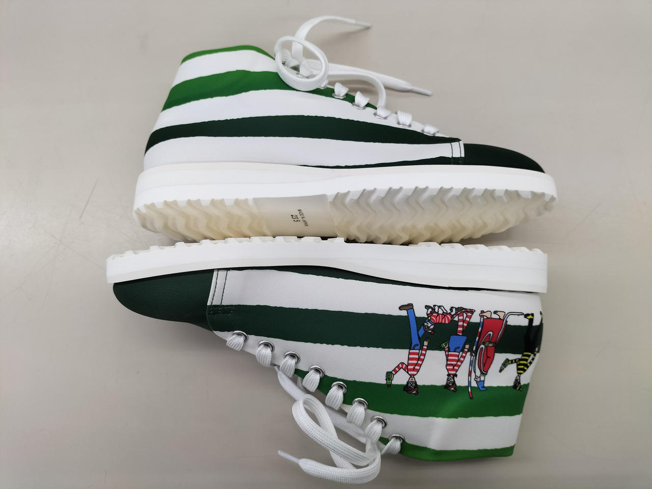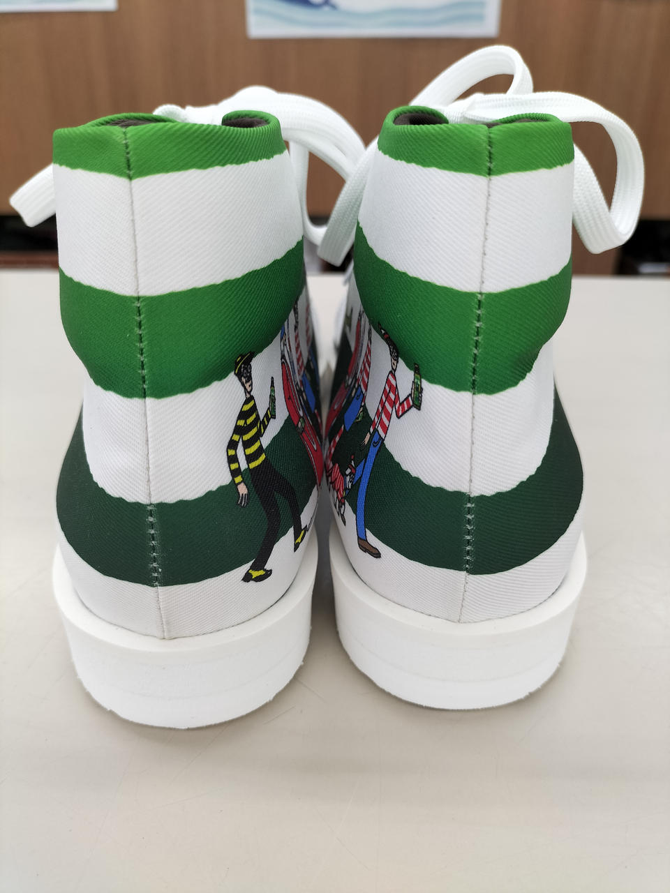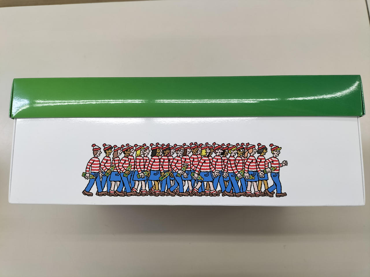 特茶とウォーリーのコラボスニーカー、ストライプデザインです。