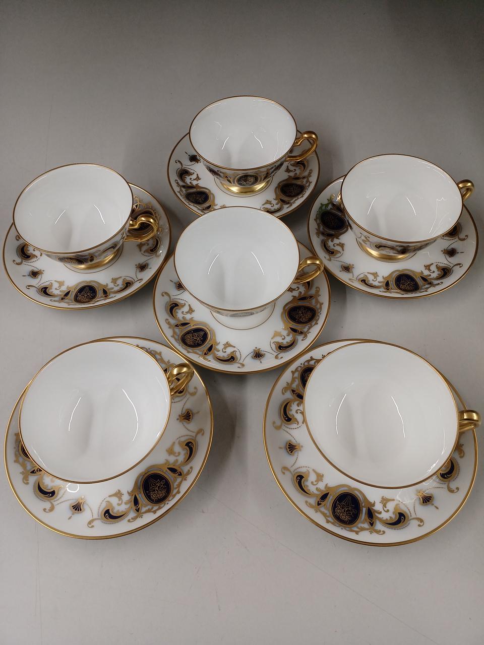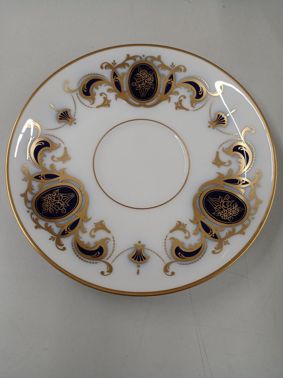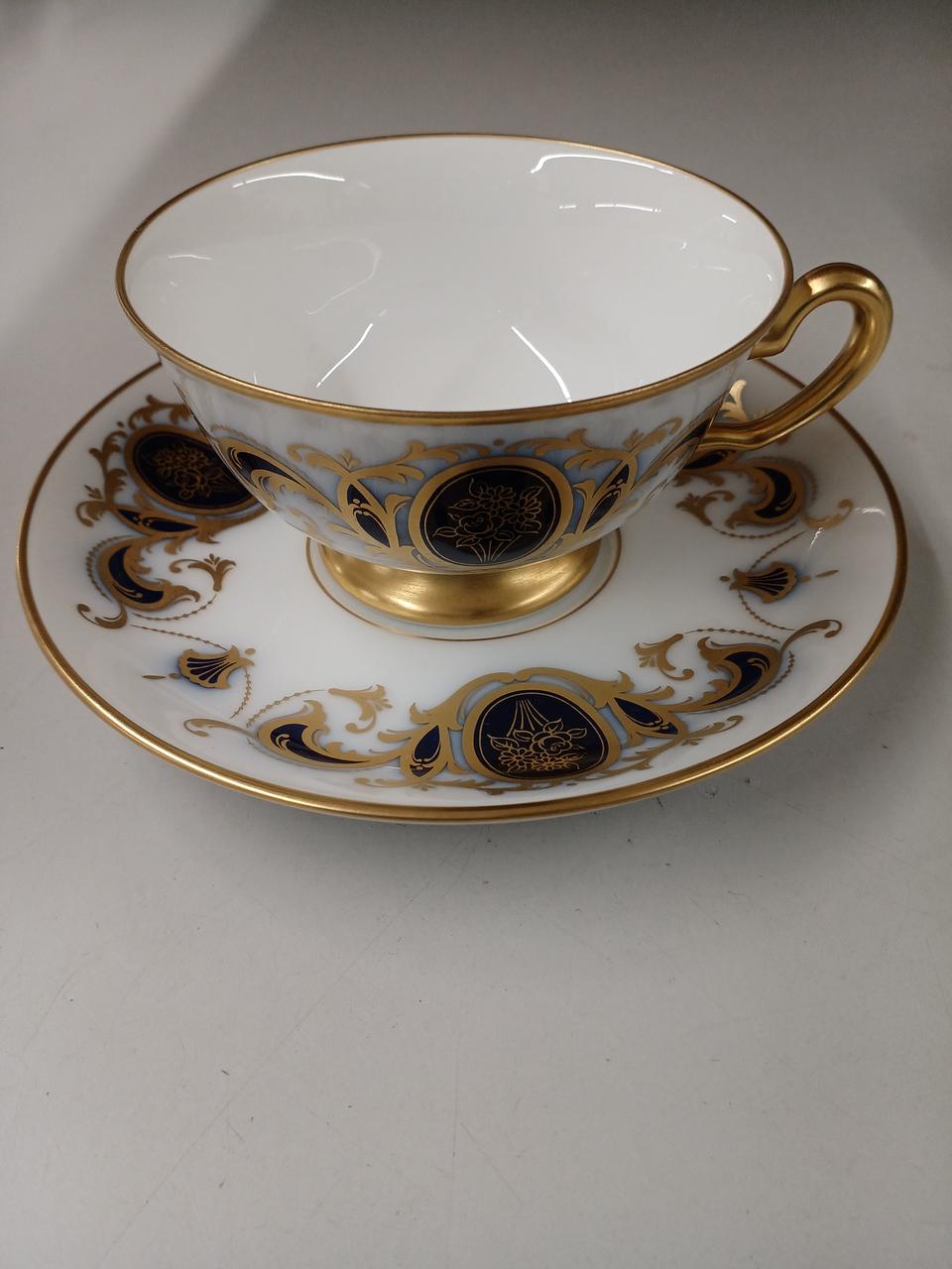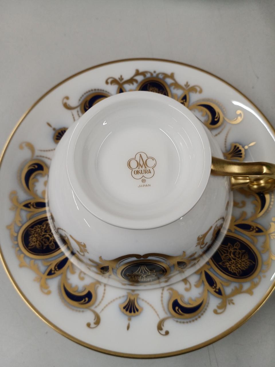 大倉陶園を代表する瑠璃色とエレガントな金色装飾によるアイリスの紋章と唐草模様が美しいカップ&ソーサーです! |