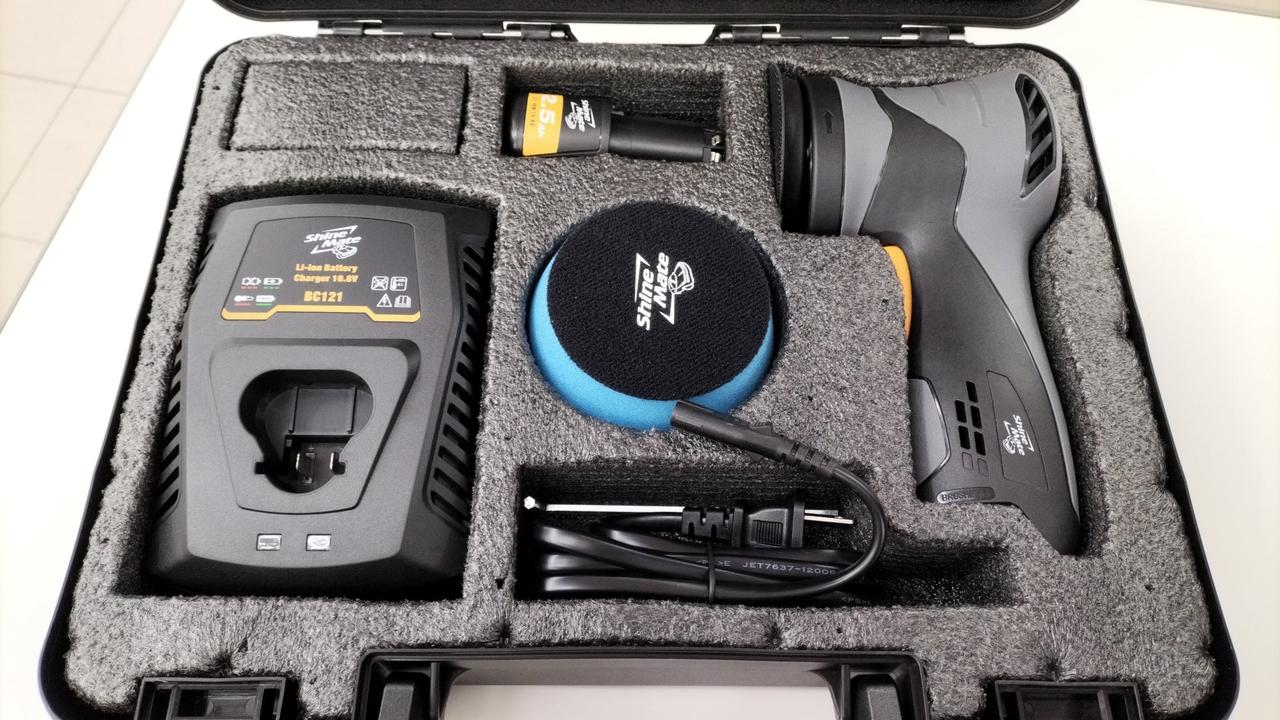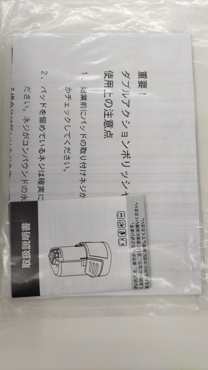 10.8Vバッテリー式のポリッシャー。未使用品です。付属品一式揃っています。化粧箱に気泡緩衝材を巻いての発送となります。