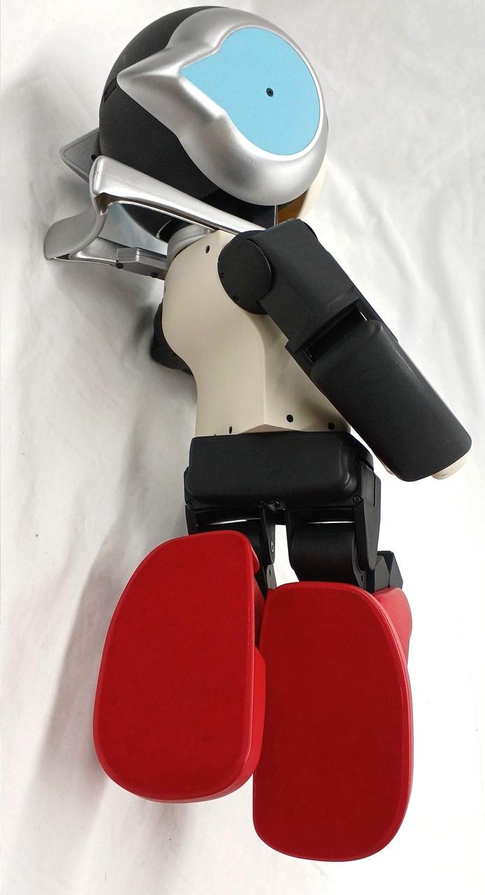 二足歩行コミュニケーションロボットです。最大10人までの顔認識、名前の呼びかけ、笑顔認証、写真撮影が可能です!