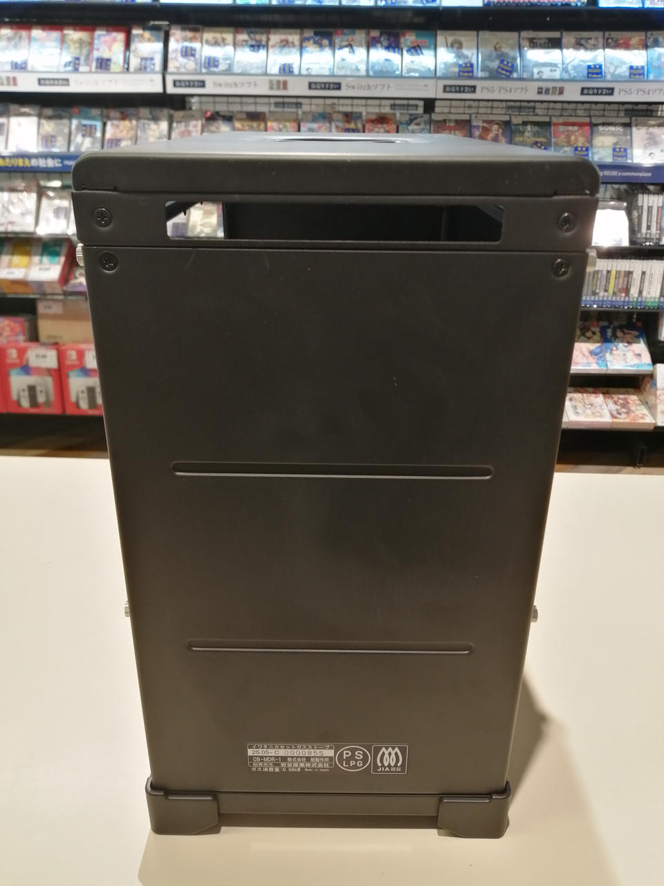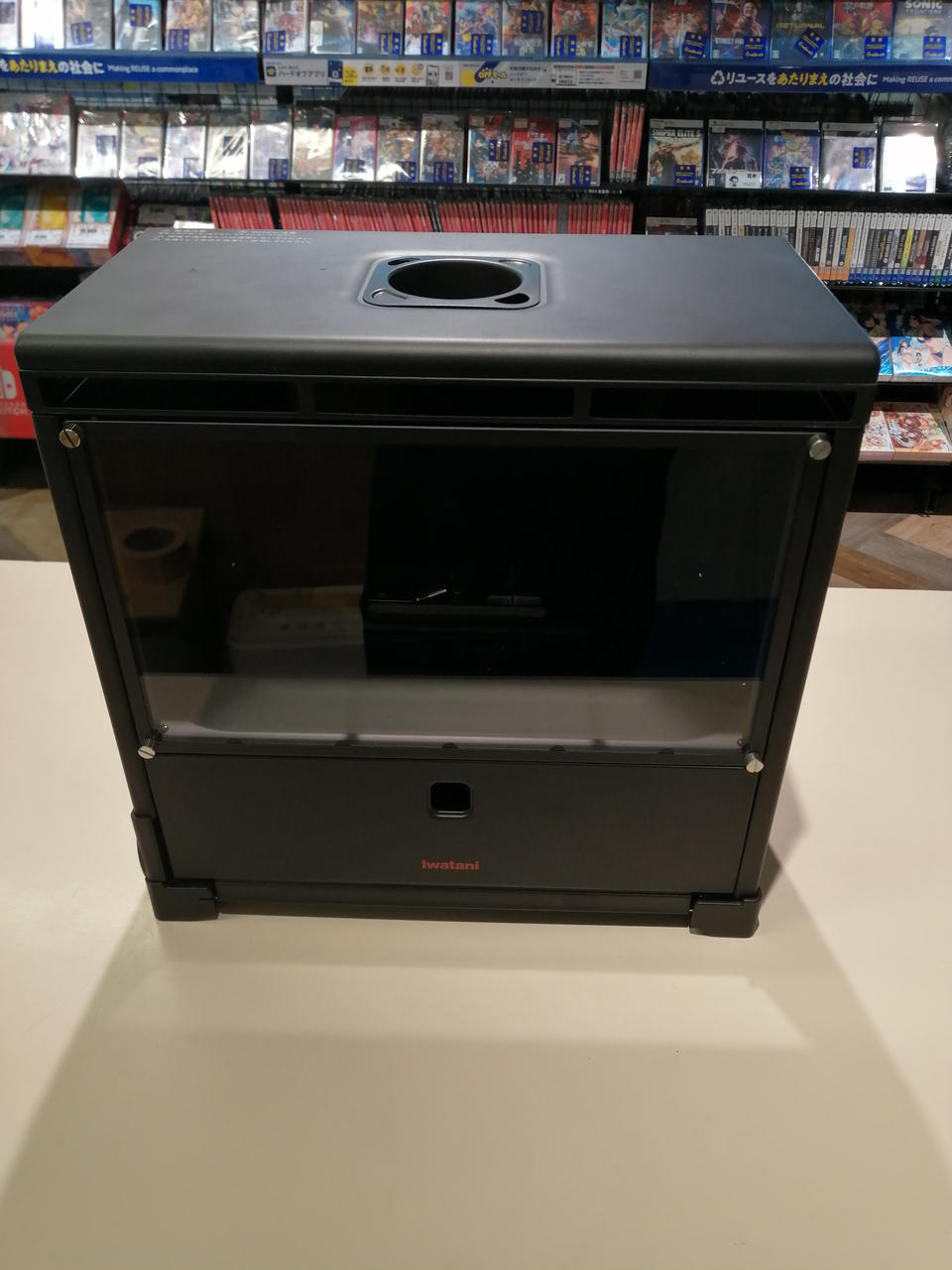 本体サイズ(幅×奥行×高さ)340×192×328mm。重量:5.7kg 火力:約0.56kW (約480kcal/h相当) 連続燃焼時間:約7時間 使用ガス:イワタニカセットガス |