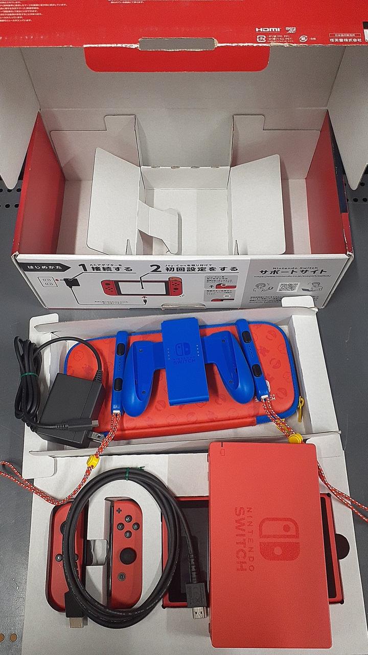 特別なデザインのNintendo Switchに、キャリングケース「マリオレッド×ブルー エディション」が付属したセット 大画面で楽しむ「TVモード」、画面をシェアする「テーブルモード」、大きい画面を持ち歩く「携帯モード」の3つのプレイモードを備える 特別色を採用した左右一対のコントローラー「Joy-Con」を“おすそわけ”することで、どこでも対戦や協力プレイを始められる |