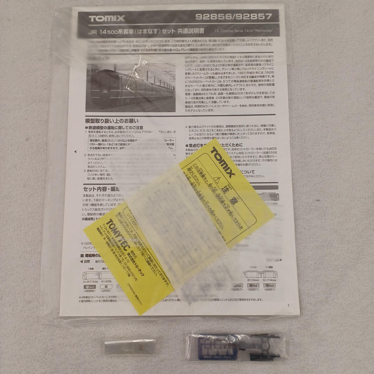 取扱説明書、小袋他、車両についている物のみです。 |