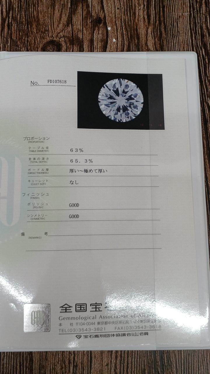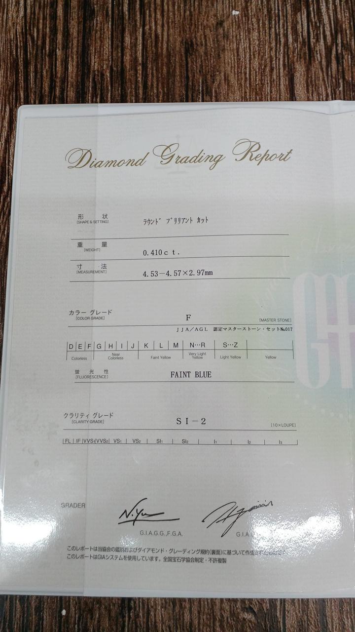 ※カラー:F/クラリティSI-2 全国宝石学協会 宝石鑑別所付属 |
