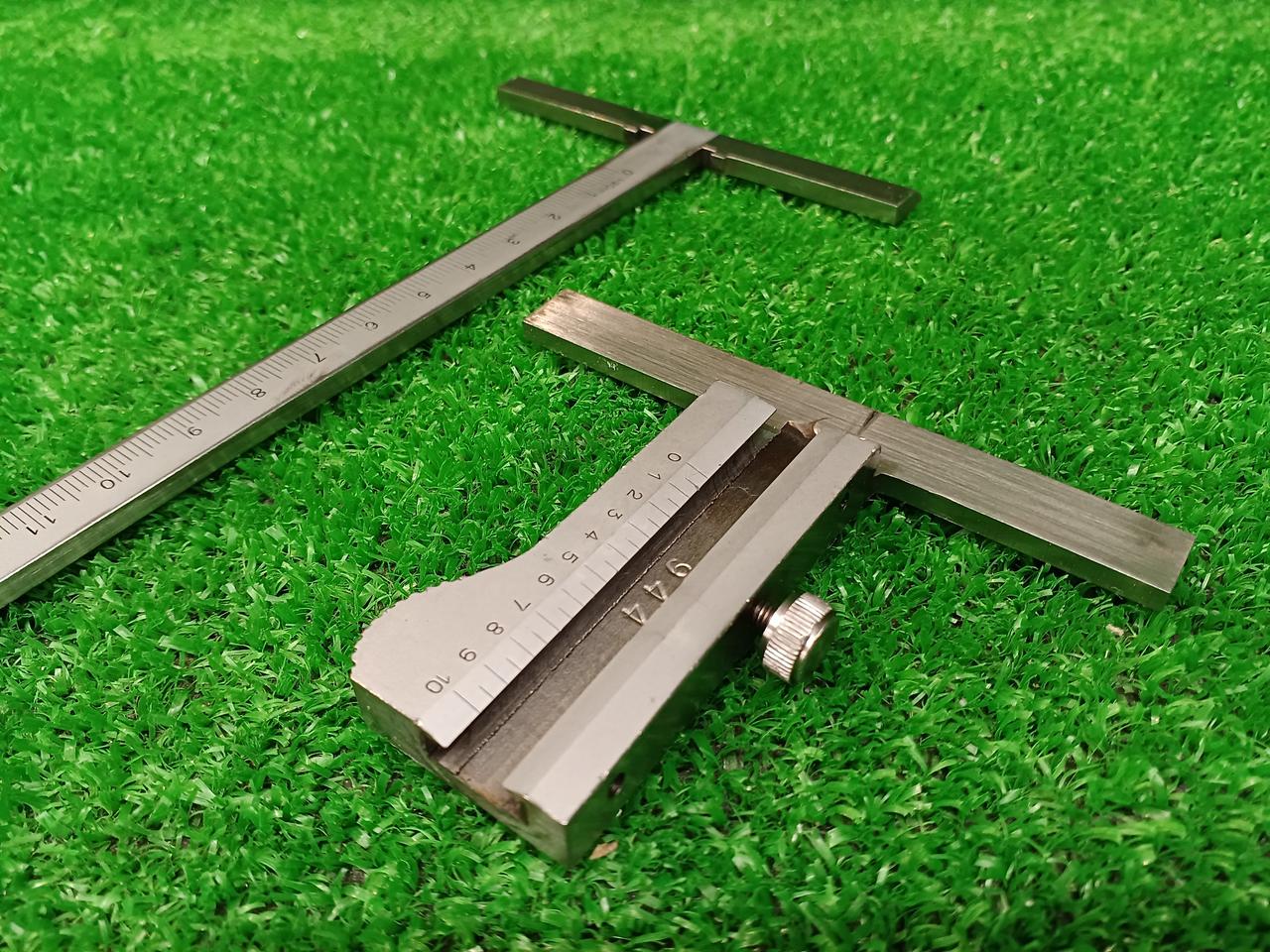 片手で幅を計りながら、もう片方の手で墨付けができる、画期的な工具です。 |