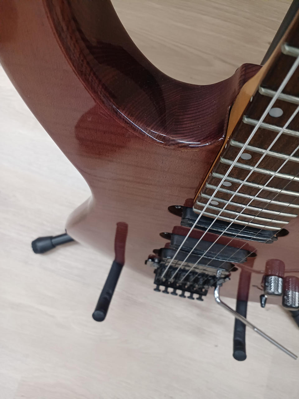 シングルハムニ発とリアにハムを添えたディンキータイプのギターフロイドローズ機構により、メタル等激しいジャンルなどに適応可能! |