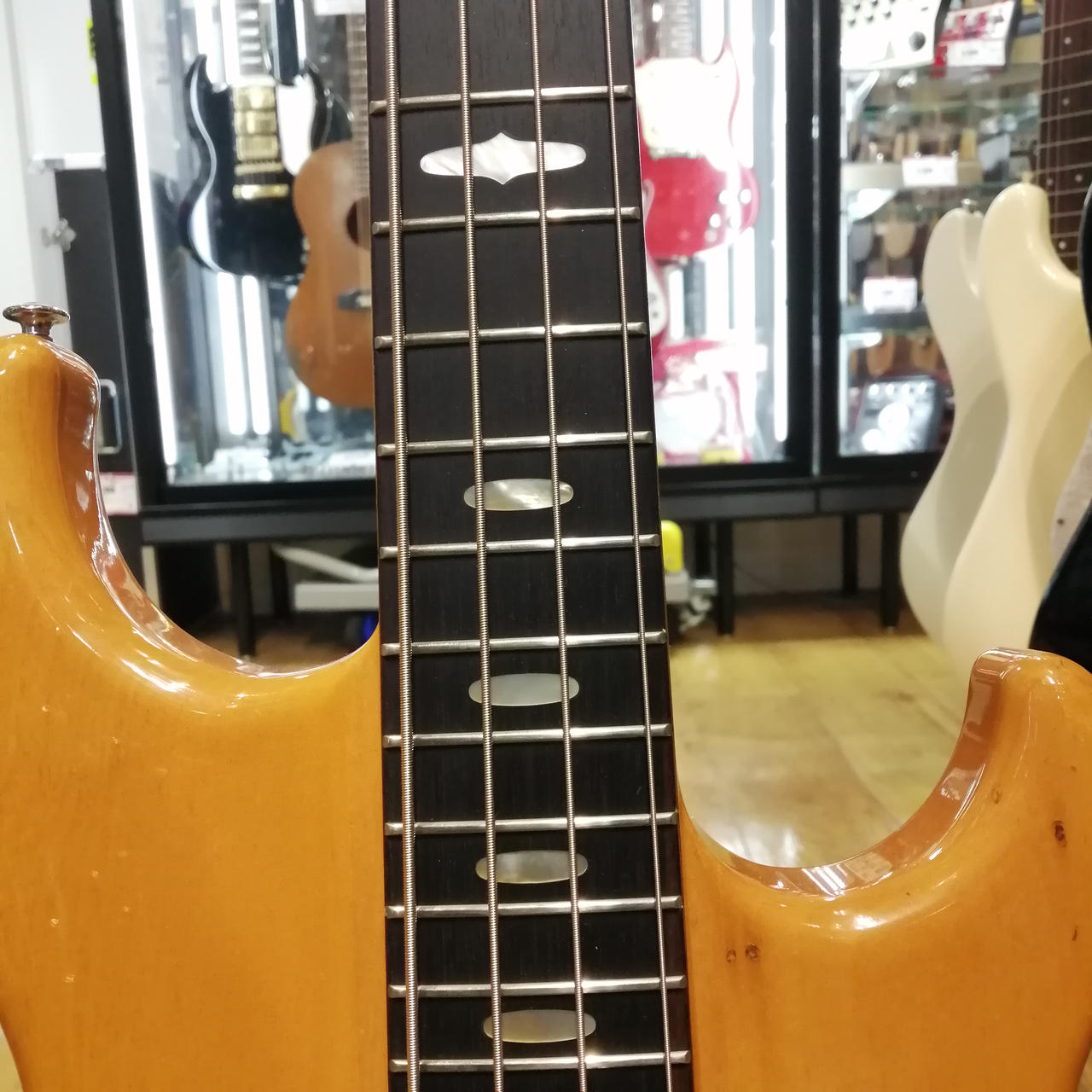 弾き傷や金属パーツのクスミなどの使用感はあるものの、フレットに凹みもなくコンディションがかなり良いです。 |