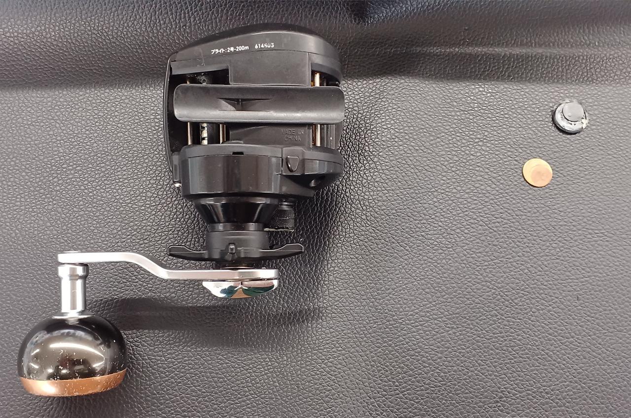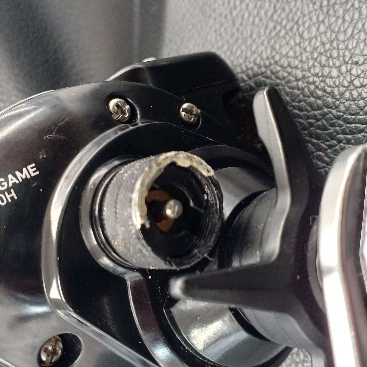 スプール調節ノブ破損あり。接着剤の補修跡あり。クラッチの切れが悪い時があります。ジャンク扱い。