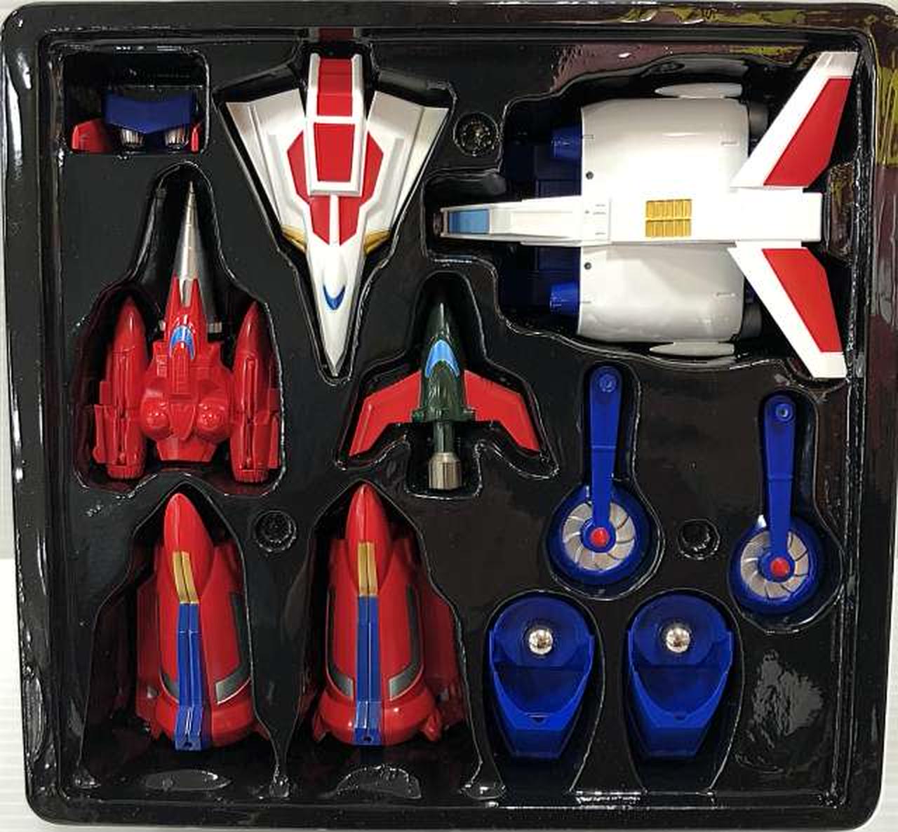 「Gアームライザー」と「ゲッター號」に分離可能どころか、オプションパーツを換装し、各ゲットマシンに分離も可能になっています。 |