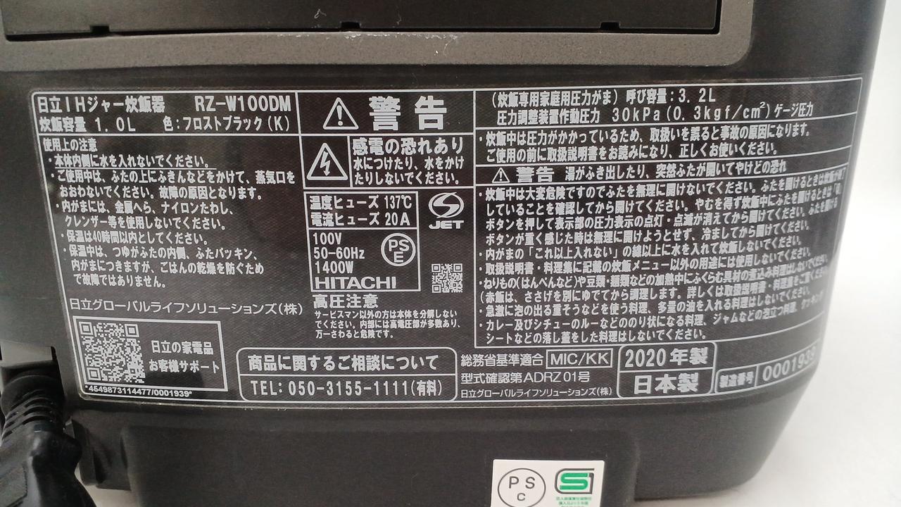 蒸気吹き出し口カバーの内部破損(カバー固定の爪とカバーの若干の変形)しています。炊飯はできますが蒸気が通常吹き出し口の他に変形部から漏れ出す可能性があります。