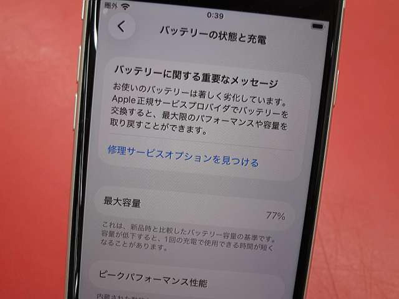 本体のみ 外装キズ少な目ですがバッテリー77%でサービス表示の為ジャンク品扱い 返品交換動作保証なしです |