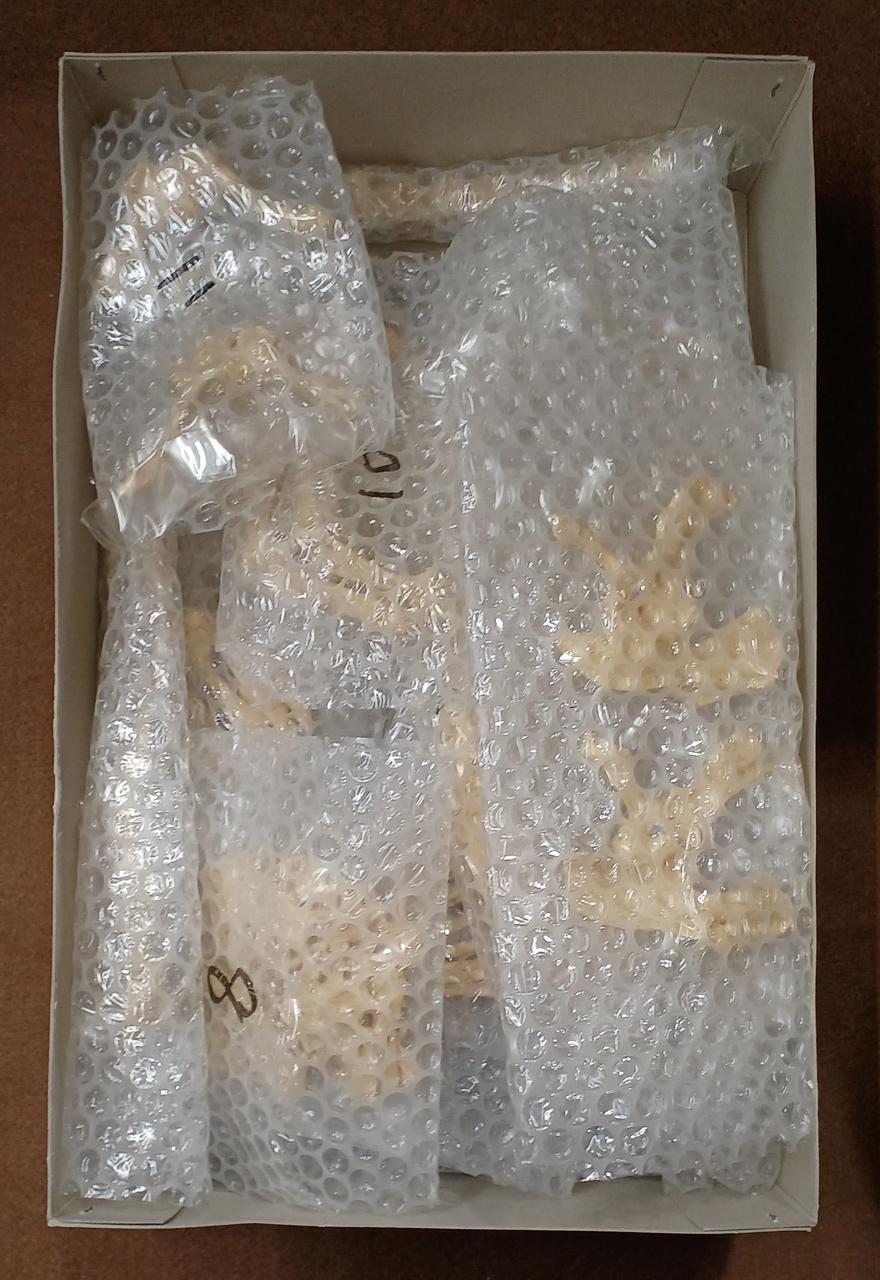 付属パーツ、木製ベース、金属プレートともに未使用。 |