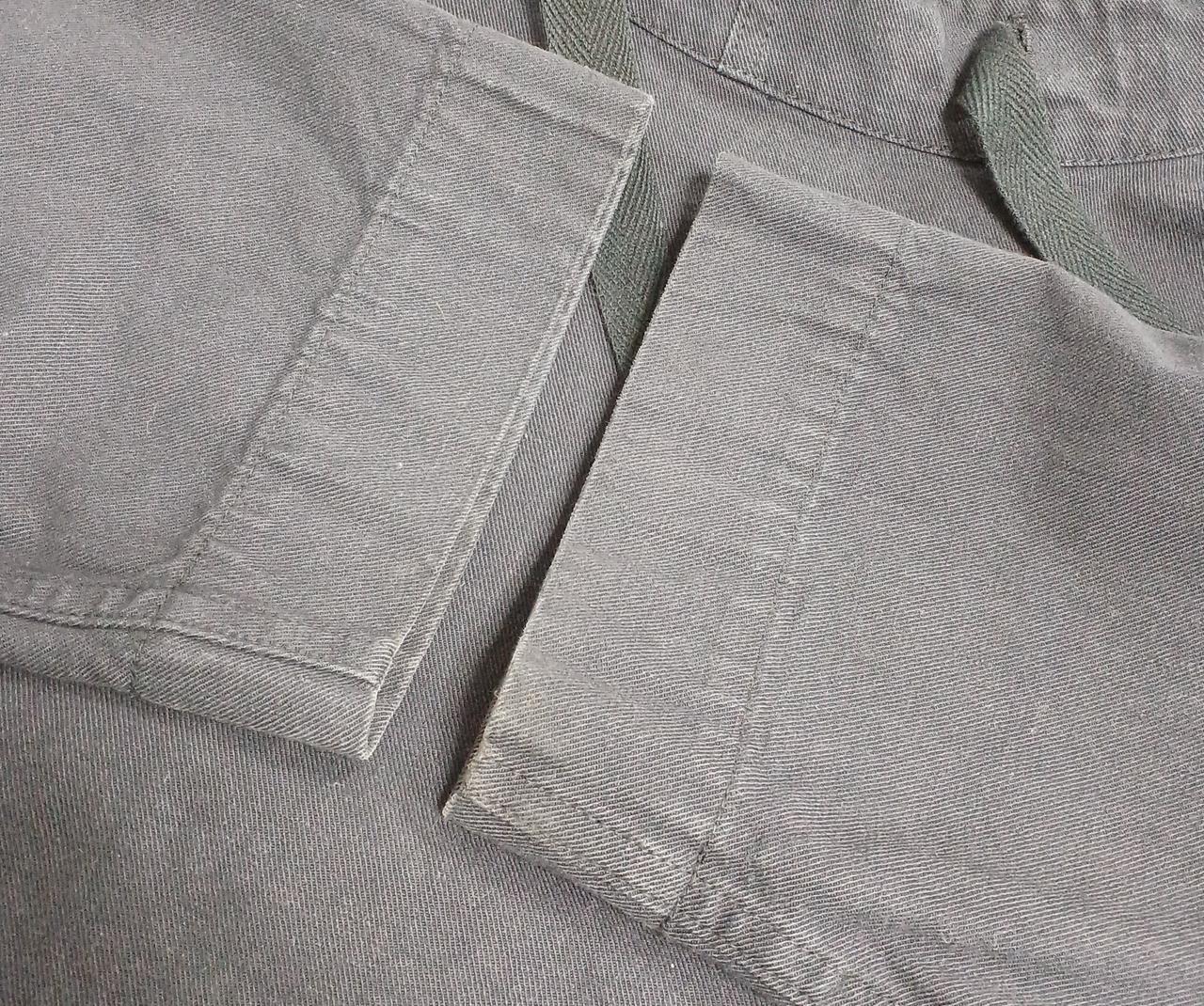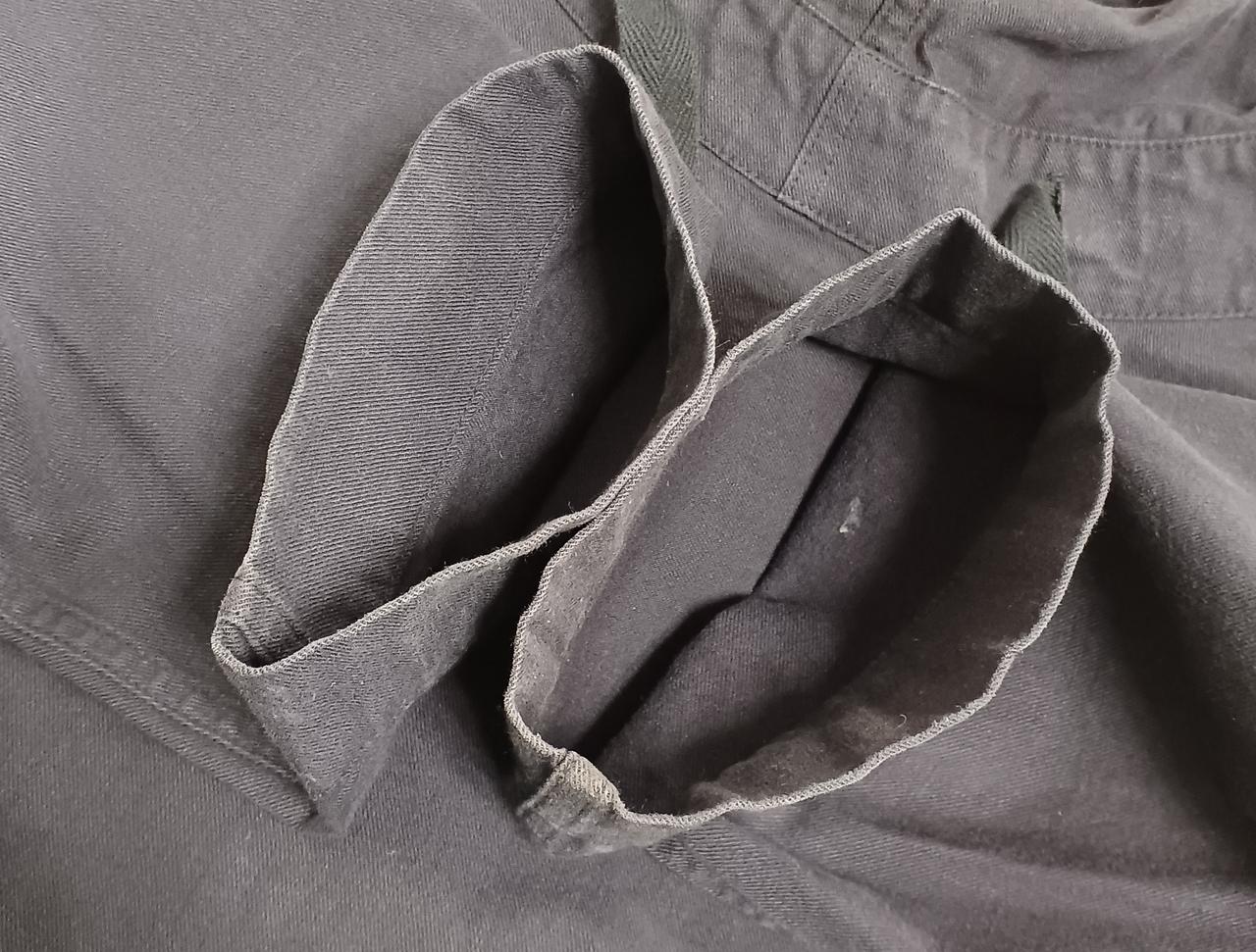 汚れが点在していて、袖口や襟元が白っぽく使用感がございます。 |