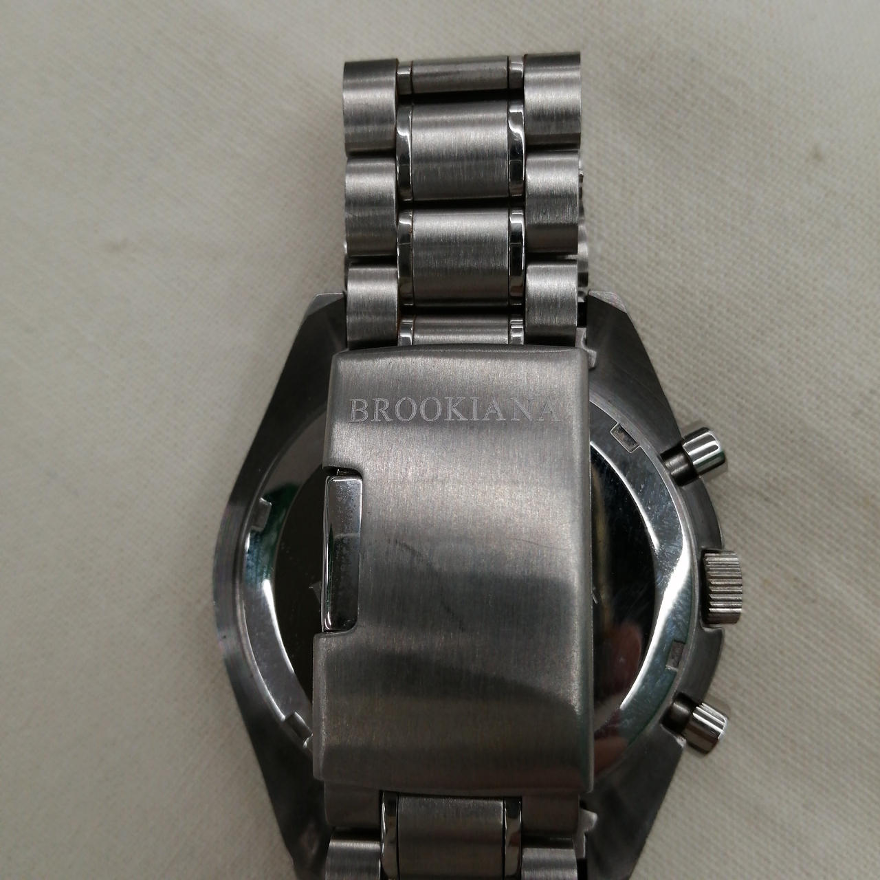 ステンレス/腕周り約18cm(三つ折りプッシュ式) |